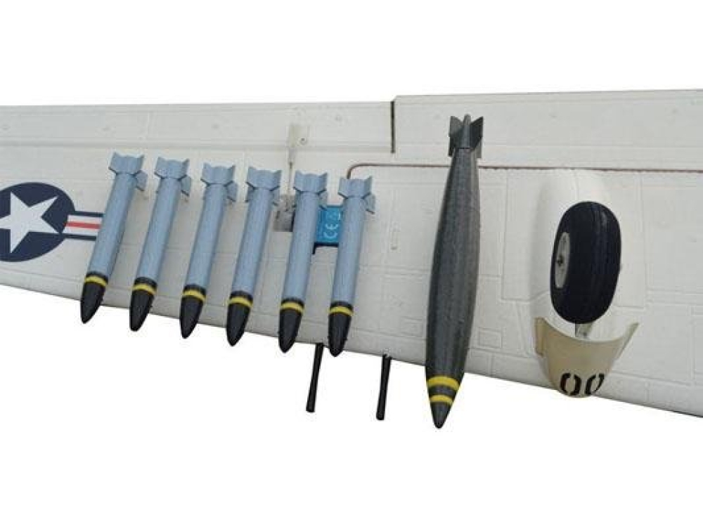 Американский штурмовик времен Второй Мировой выполненный в оригинальном раскрасе и с высокой степенью достоверности и детализации. В комплекте идут даже 3 типа боеприпасов. Несмотря на копийность, модель полностью функциональна и может взлетать с взлетно-посадочной полосы и выполнять в воздухе фигуры высшего пилота. На самолет установлен мощный бесколлекторный мотор, который обеспечивает мощную тягу и уверенное управление в воздухе. Фюзеляж и крылья изготовлены из легкого и прочного EPO материала. Его легко обслуживать и ремонтировать в случае падений. Самолет имеет быстросъемное крыло и хвостовое оперение, что упрощает хранение и транспортировку.