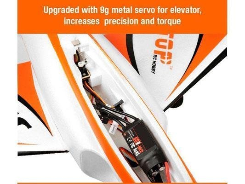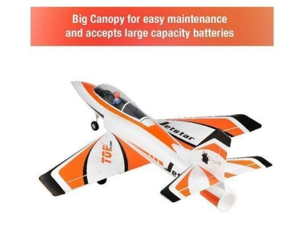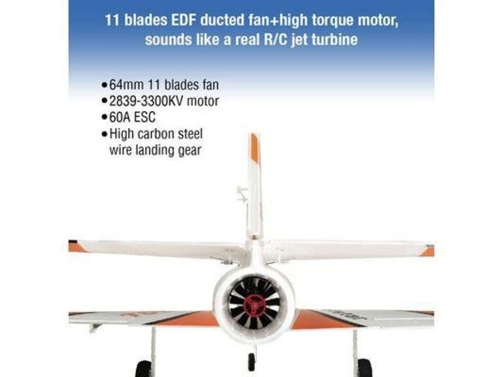 Радиоуправляемый реактивный самолёт с бесколлекторным двигателем. Конструкция моторов - импеллерная. Модель способна выполнять трюки высшего пилотажа. Вес составляет всего 887 грамм. Ёмкость аккумулятора 2200 mAh.
