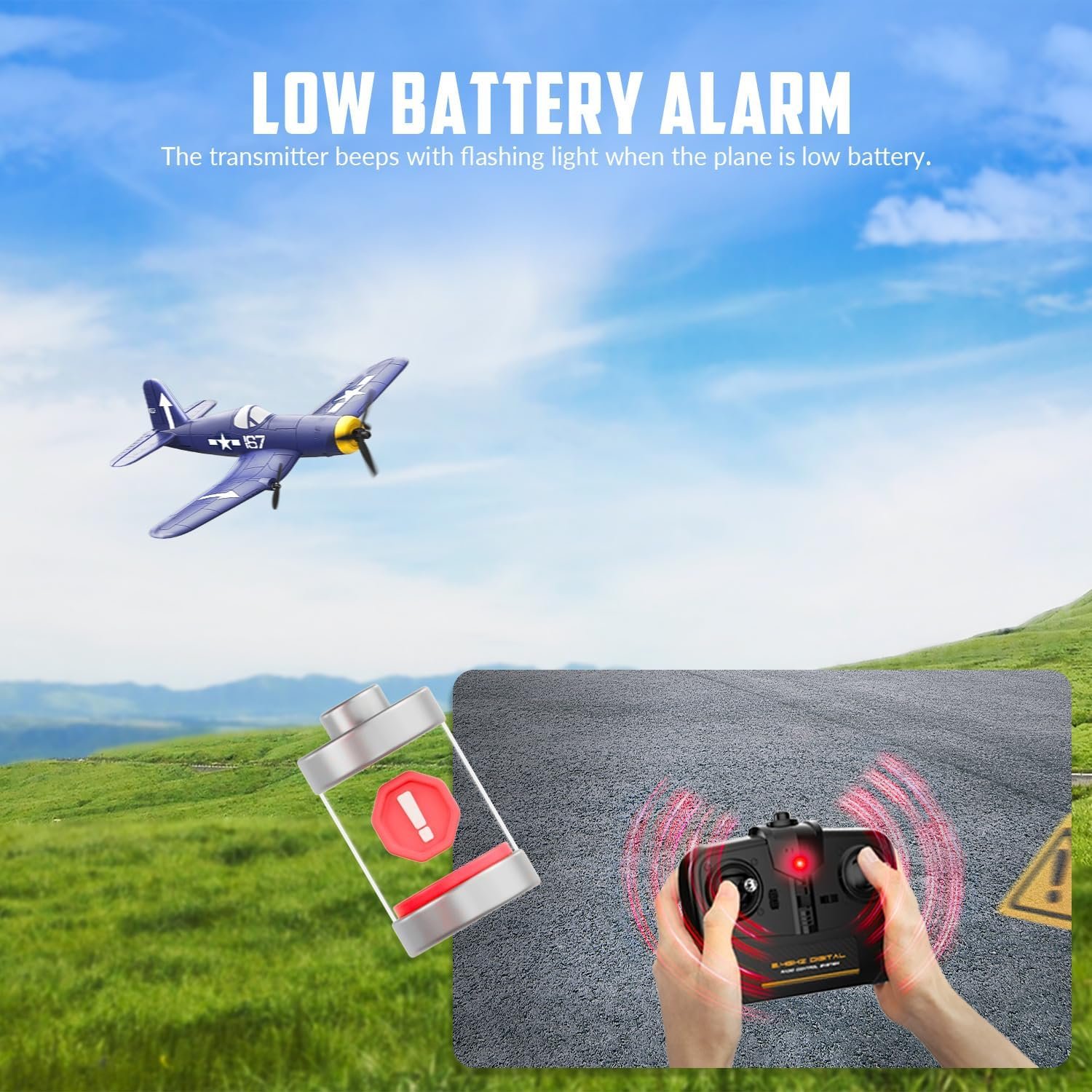 Фигуры высшего пилотажа вы можете выполнить в ручном режиме, а также в автоматическом, по нажатию одной кнопки (one key aerobatic). Самолет может самостоятельно выполнить мертвую петлю или бочку. Также имеется функция автовозврата. Нажав кнопку самолет развернется на 180 градусов и полетит в обратном направлении. 6-ти осевой гироскоп помогает выравнивать самолет по время полета, т.е. вам не придется постоянно подруливать, а модель самостоятельно вернется в ровное положение.