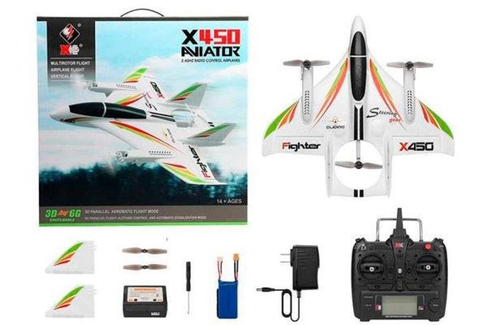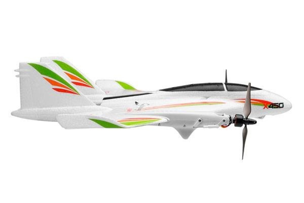 Самолет имеет впечатляющие режимы полета, которые не оставят равнодушным никого, а именно вертикальный полет, что позволит ему взлетать как ракета без взлетных полос и горизонтальный полет с дальностью более 300 метров, а также имеет режим полета 3D, который отвечает за трюки высшего пилотажа предназначенный для более опытных пилотов. Аппарат оснащен светодиодной подсветкой, что позволяет его отлично видеть в темное время суток. В модель установлена литий-полимерная аккумуляторная батарея, емкостью 1000 мАч, время полета составляет от 15 до 19 минут, в зависимости от интенсивности управления. Аппарат имеет 6-осевой гироскоп и 3 бесколлекторных двигателя, мощностью 3000 кВ. Аккумулятор самолета заряжается всего 80 минут, для пульта дистанционного управления требуются батарейки типа АА в количестве шести штук. В комплектацию входит: самолет в сборе, зарядного устройство, пульт дистанционного управления, 3 винта, батарея и инструкция, а так же масса приятных ощущений для вас и вашего ребенка