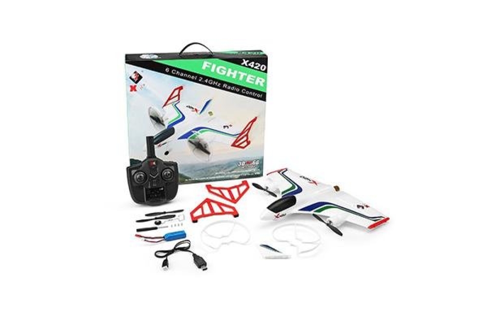 WLToys XK Cessna-182 X420 – больше, чем просто радиоуправляемая модель самолета! Помимо стабильного полета X420 отличается функцией вертикального взлета и посадки, что делает его схожим с квадрокоптером. Среднегабаритная модель обладает ярким дизайном, корпус выполнен из легкого и прочного EPP, благодаря чему вес самолета составляет всего 155 г. Удобный пульт с простым управлением позволит почувствовать себя настоящим пилотом даже новичку. Полного заряда аккумулятора хватит на 8-10 минут увлекательного полета на дальность до 200 м, при этом зарядится батарея меньше, чем за час.