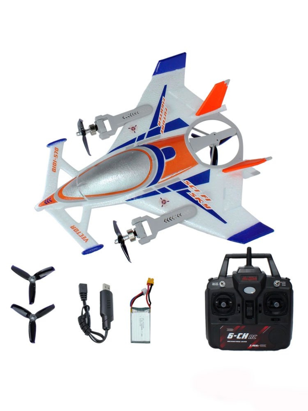 Радиоуправляемый самолет дрон SCI Fi Sky VTOL 3D6G 8ch - QIDI-570-BLUE - это инновационный RC-самолет с 3 режимами полета: вертикальный полет/горизонтальный полет самолета 6G/ 3D полет для профессиональных пользователей.