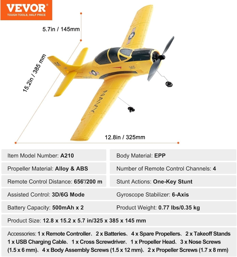 В комплекте идут: самолет, пульт управления, зарядное устройство, отвертка, винты 7 шт, инструкция.