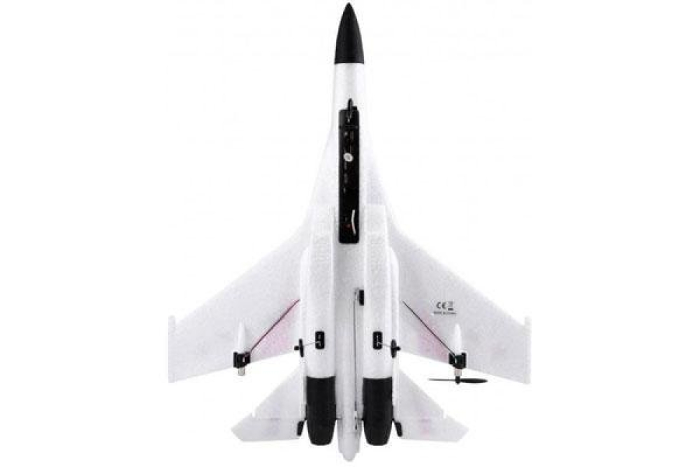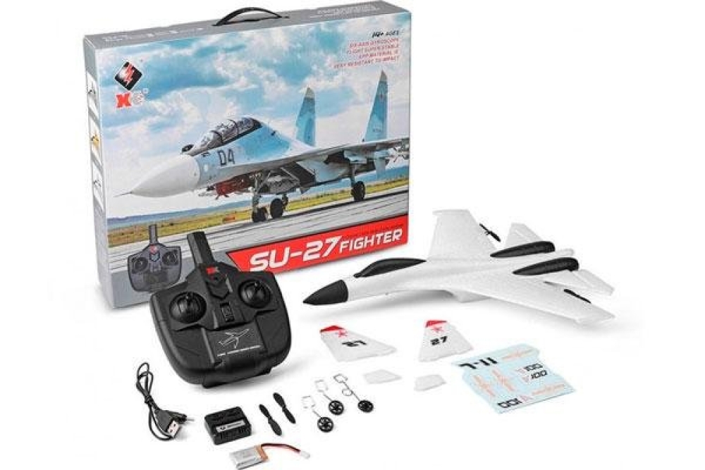 Су-27 от компании XK выполнен из EPO материала - это пенопласт прессованный особым образом со специальным клеящим составом. Благодаря тому самолет получается очень прочным и при этом легким. За счет этого увеличивается время полета и уменьшается вероятность поломки самолета при падении. Нос самолета имеет амортизирующую насадку. Модель можно запускать как с руки, так и со взлетно-посадочной полосы, т.к. в комплекте идут посадочные шасси.