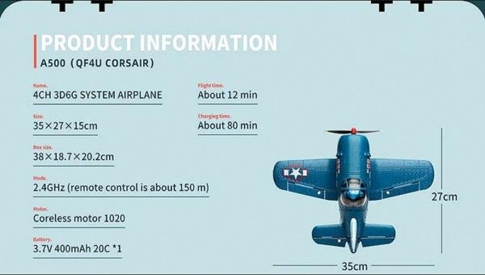- аккумуляторная батарея Li-Po 3,7В 400 мАч 20°C позволит зарядить самолет за 80 минут