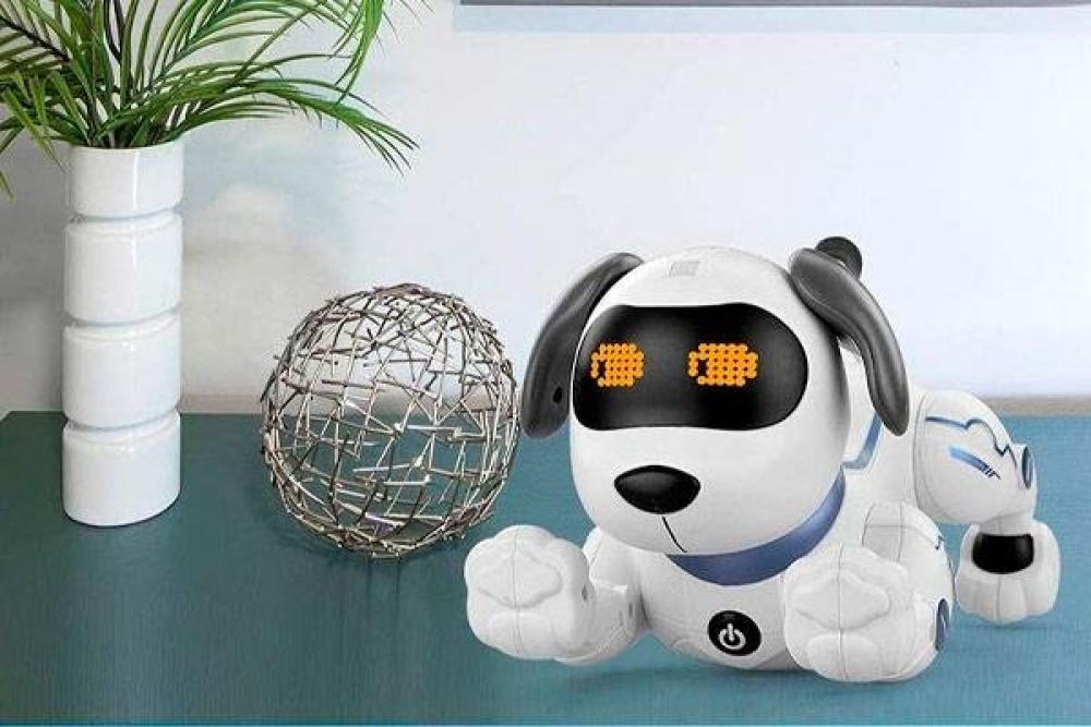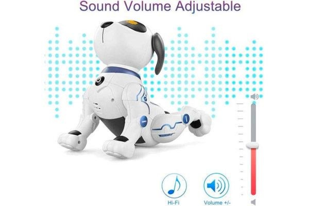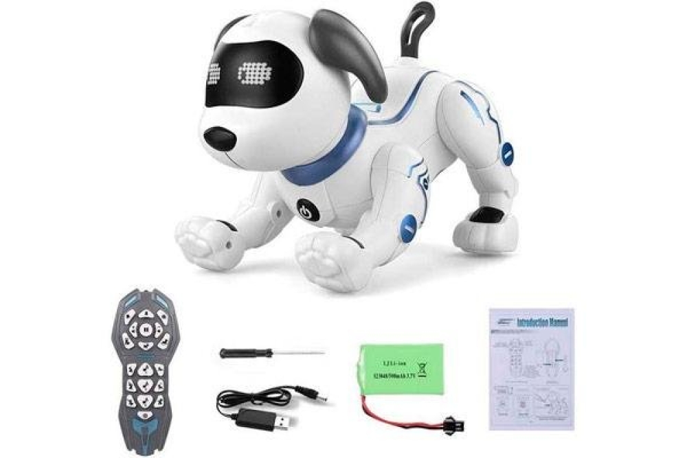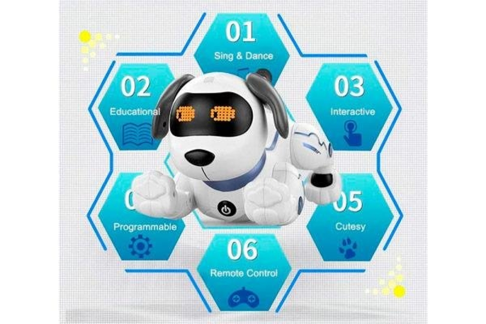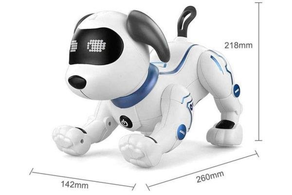 Этот интерактивный робот-собака станет отличным подарком для ребёнка на любой праздник. С помощью этой игрушки ребёнок научится ответственно подходить к домашним животным. Собака имеет большой набор установленных программ, умеет петь и танцевать. Понимает устную речь и выполняет различные команды, такие как как сидеть, лежать, двигаться вперёд-назад, вставать на передние и задние лапы. В своём функционале имеет большой набор музыкальных композиций под которые игрушка танцует и поет, вы также можете запрограммировать собственные танцы и движения. Собачка реагирует на прикосновения и умеет моргать, двигать глазами, радоваться а также грустить. Дальность действия от инфракрасного пульта управления составляет 5-10 метров, а аккумулятора на 500 mah 3.7B хватит на 35 минут игры. В комплекте вы найдете все необходимое за исключением двух батареек типа ААА для пульта управления, которые необходимо докупить отдельно.
