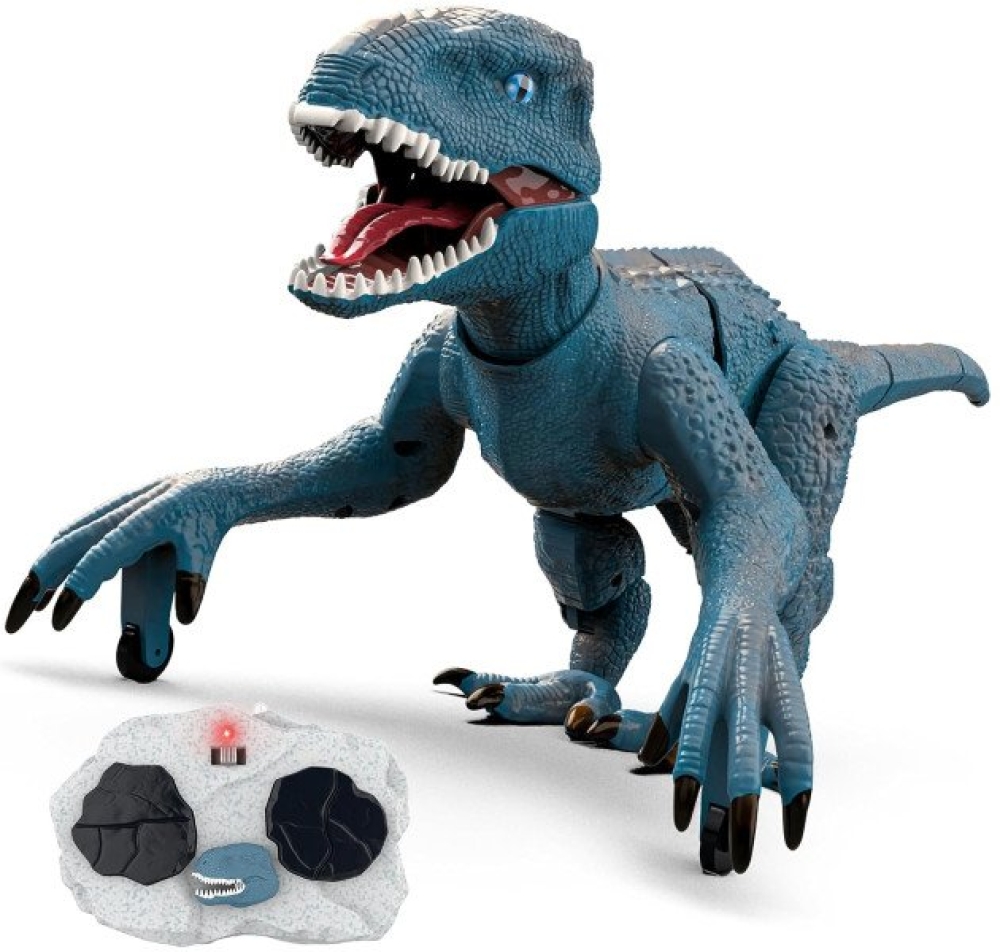 Такого питомца на радиоуправлении можно приютить у себя. Он может двигаться вперед и назад, поворачивать вправо, влево и при движении реалистично изгибается тело и шевелится хвост. Благодаря колесикам, установленным на передних конечностях, динозавр имеет дополнительные точки опоры и поэтому очень устойчив. Подсветка пасти в темноте выглядит зловеще и придает динозавру реалистичности. Кроме того, динозавр издает реалистичные звуки.