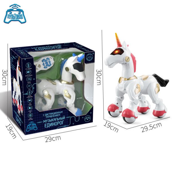 Радиоуправляемый робот Единорог (синий, свет, звук, акб) - ZYA-A2995-BLUE – это игрушка на пульте дистанционного управления для детей от 3-х лет. Музыкальный Единорог с ярким освещением, веселыми песнями и музыкой, сказками из серии ''Пультовод'' на пульте дистанционного управления от компании Zhorya.