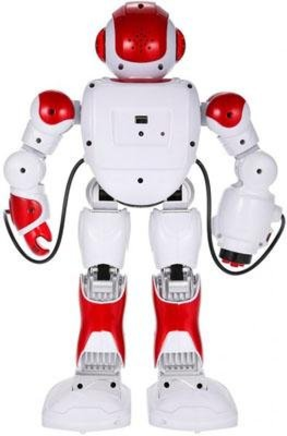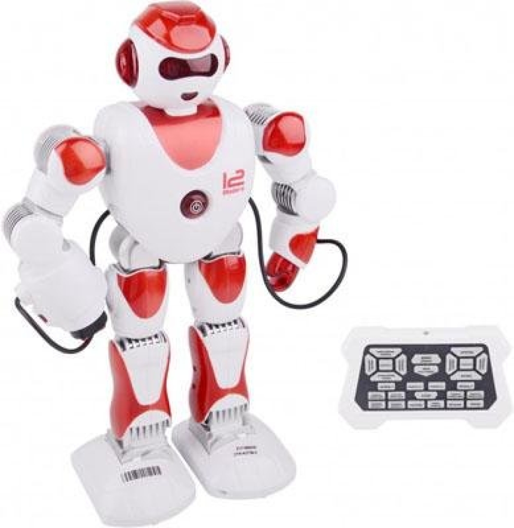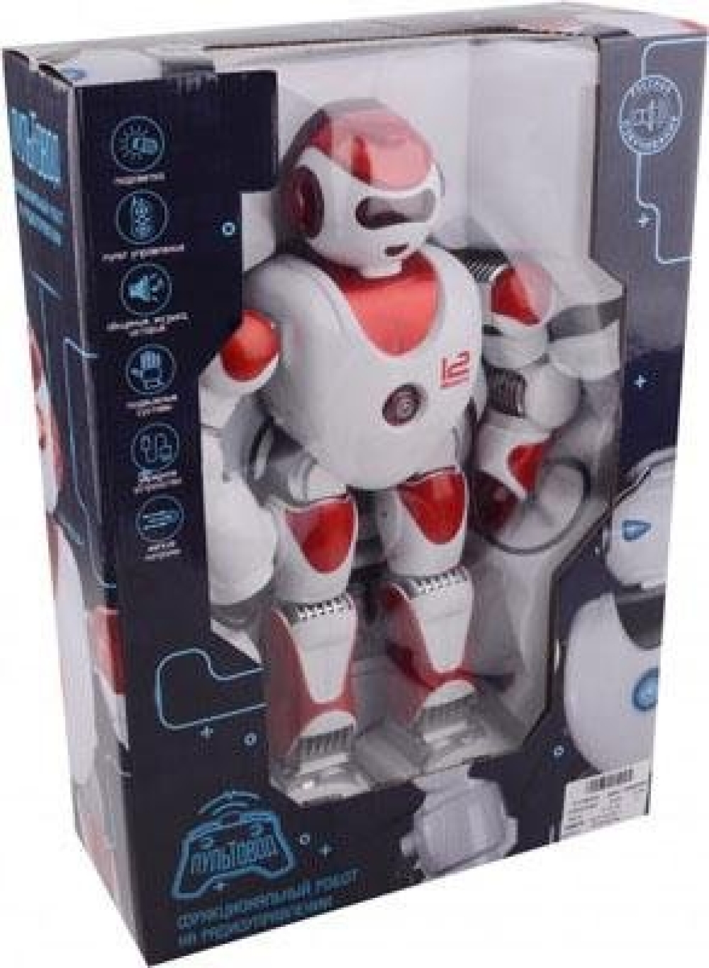 Игрушка робот с интерактивными функциями - умеет ходить. танцевать, двигать руками, петь и рассказывать сказки. Лицо робота оснащено светодиодными огнями, игра сопровождается световыми и звуковыми эффектами. Обладает русской озвучкой. Одна из рук робота оснащена пушкой - 3 стрелы с присосками готовы к бою.