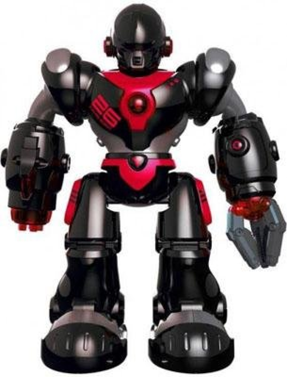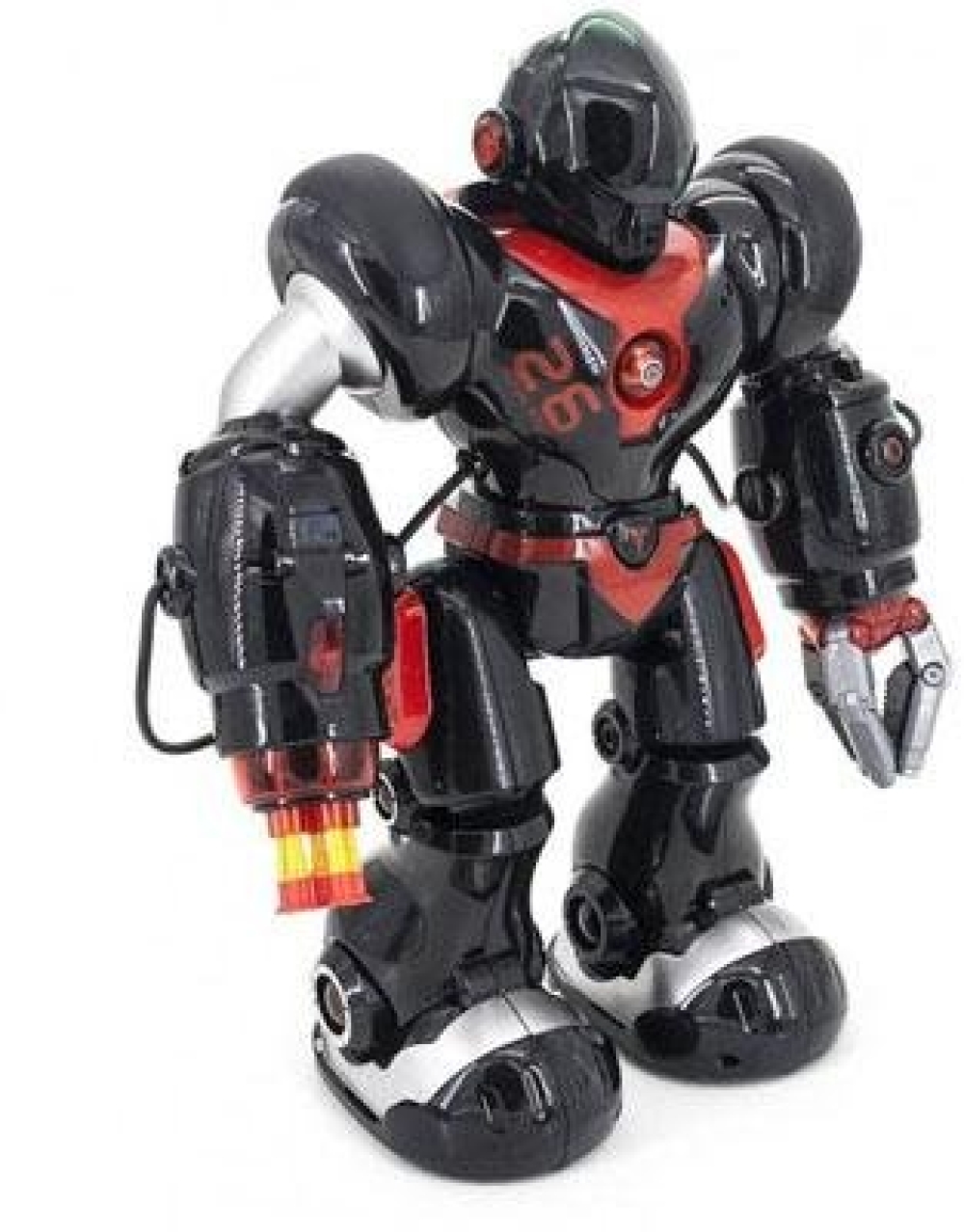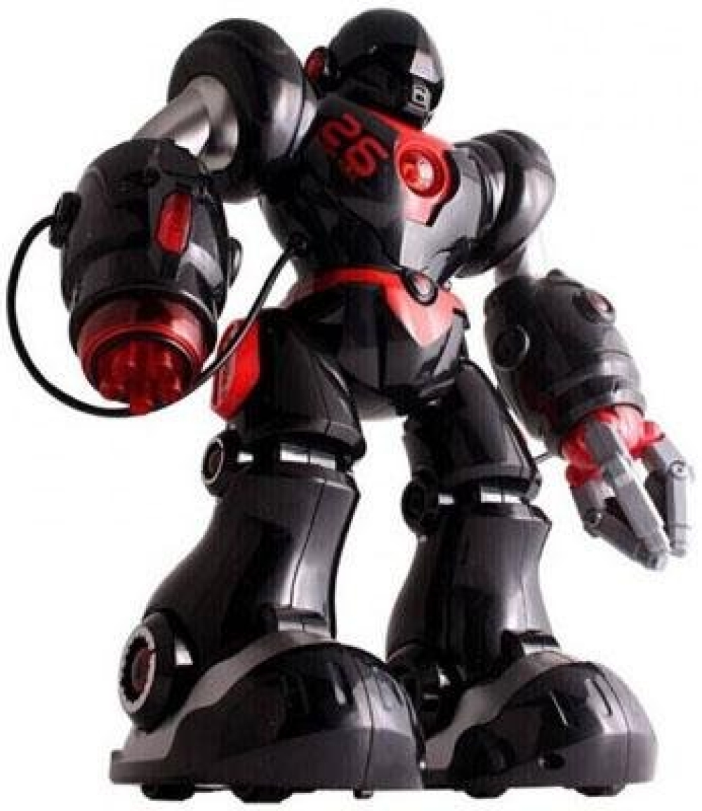 Робот имеет богатый арсенал - левой рукой он способен поднимать предметы, а на левой расположена перезаряжаемая пушка вместимостью на 5 ракет присосок. Умеет ходить во всех направлениях и танцевать. Все это сопровождается световыми и звуковыми эффектами. Управляется робот с помощью пульта дистанционного управления, который также имеет ряд запрограммированных функций. Игрушка также поддерживает голосовое управление.