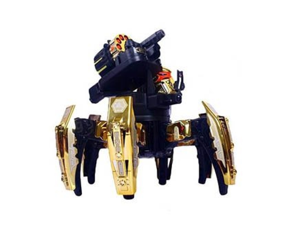 Вооруженный робот на радиоуправлении. Данная модель подарит вам множество положительных эмоций! Игрушка оснащена 6 ногами, которые позволяют передвигаться по пересеченной местности. В башне расположена установка стреляющая дисками. Для более меткой стрельбы модель комплектуется лазерным прицелом. При наличии 2-х моделей возможны дуэльные бои.