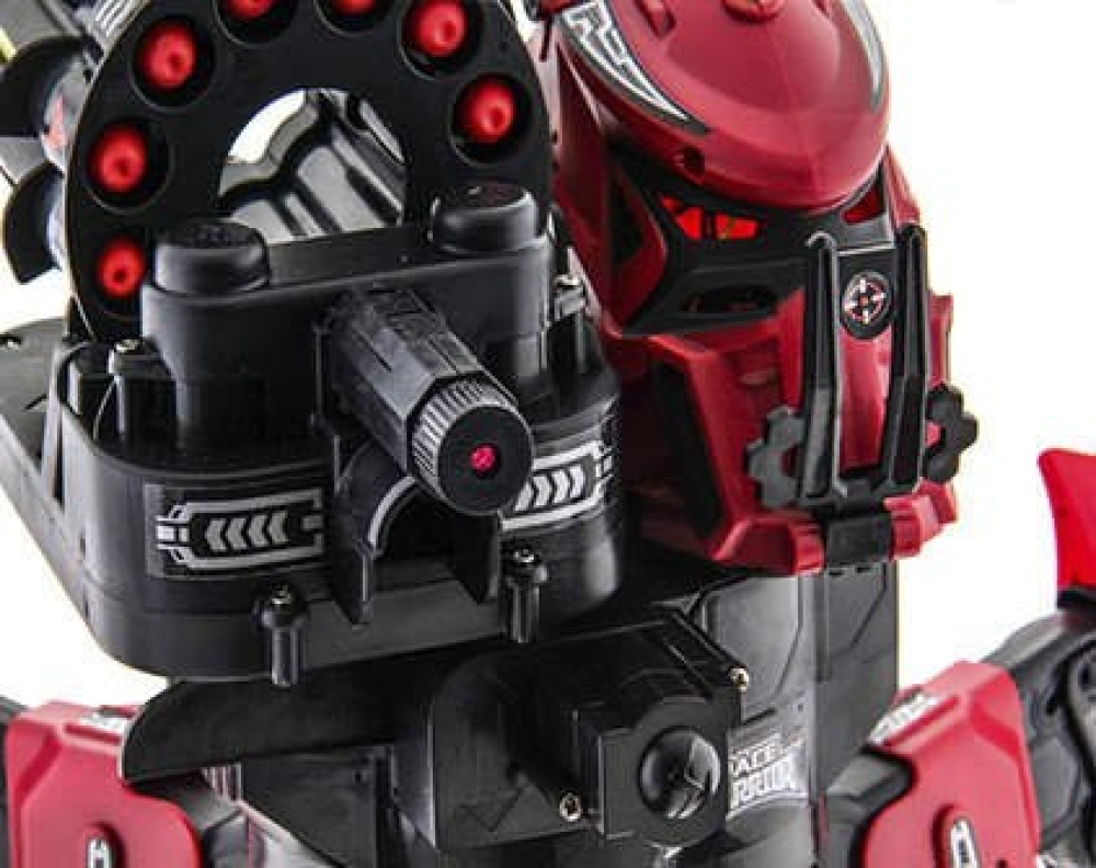 Вооруженный робот на радиоуправлении. Данная модель подарит вам множество положительных эмоций! Игрушка оснащена 6 ногами, которые позволяют передвигаться по пересеченной местности. В башне расположена установка стреляющая дисками. Для более меткой стрельбы модель комплектуется лазерным прицелом. При наличии 2-х моделей возможны дуэльные бои.