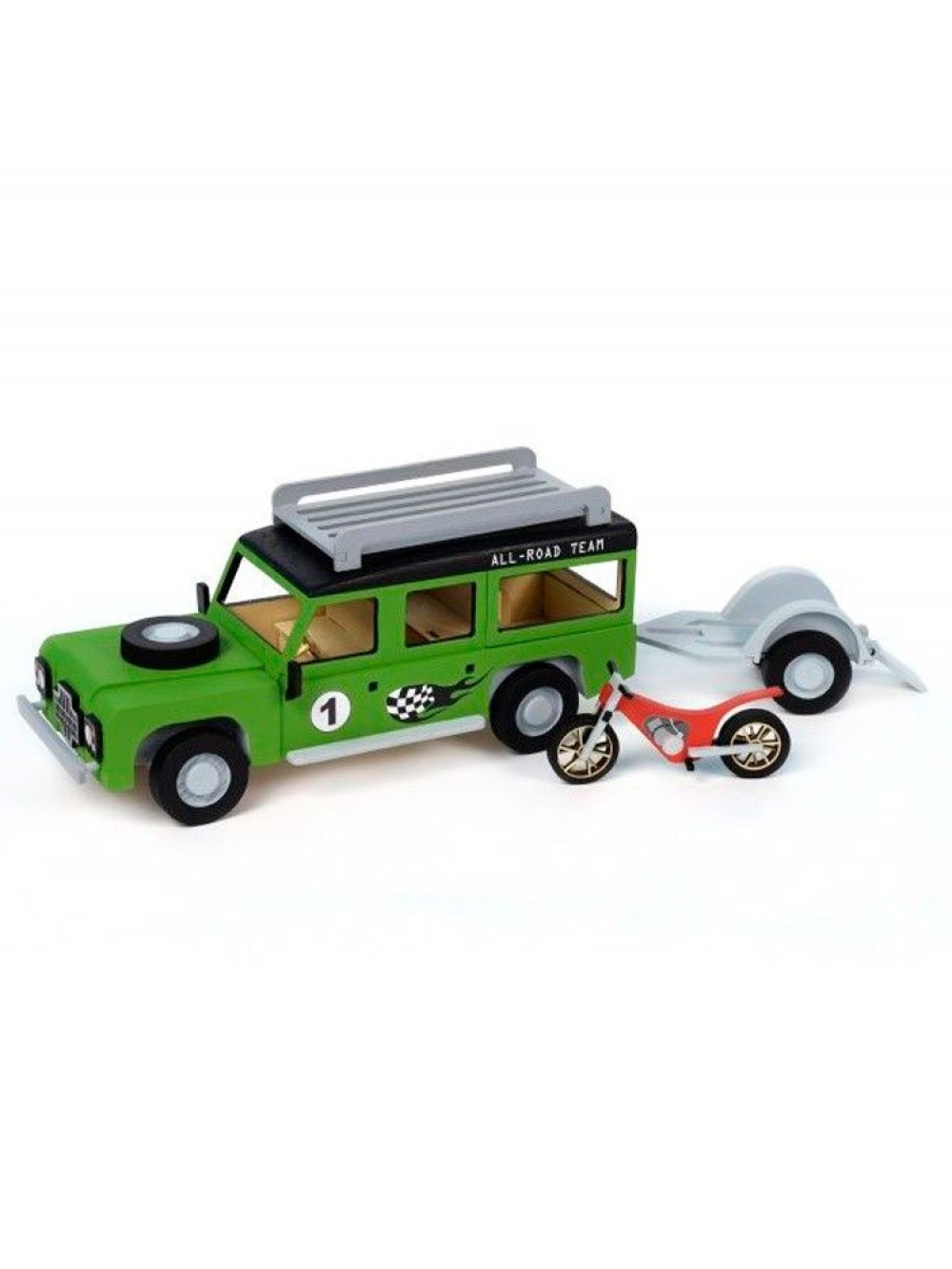 Представленный собранный автомобиль Land Rover МОТОГОНЩИК украсит любую коллекцию деревянных моделей.