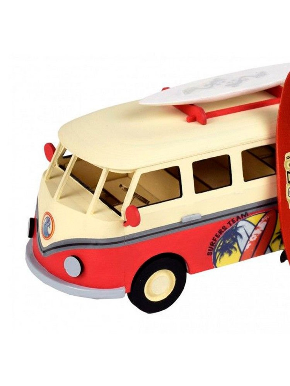 Собранная деревянная модель Surfer's Van имеет самое высокое качество, детали выполнены с помощью лазерной резки. Формы модели реалистичны. Крыша модели съемная для доступа к внутренним деталям автомобиля.