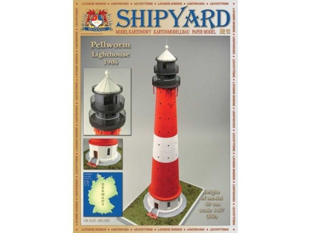 Сборная картонная модель Shipyard маяк Pellworm Lighthouse (№61), 1/87 - MK030