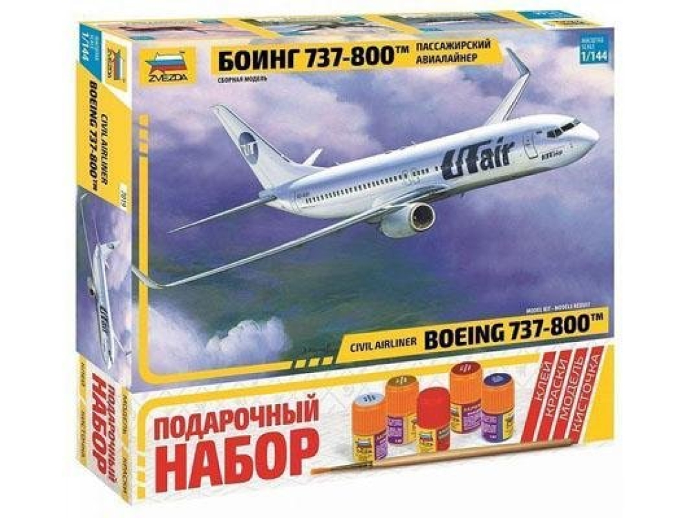 Модель сборная ZVEZDA Авиалайнер Пассажирский Боинг 737-800 подарочный набор, 1:144