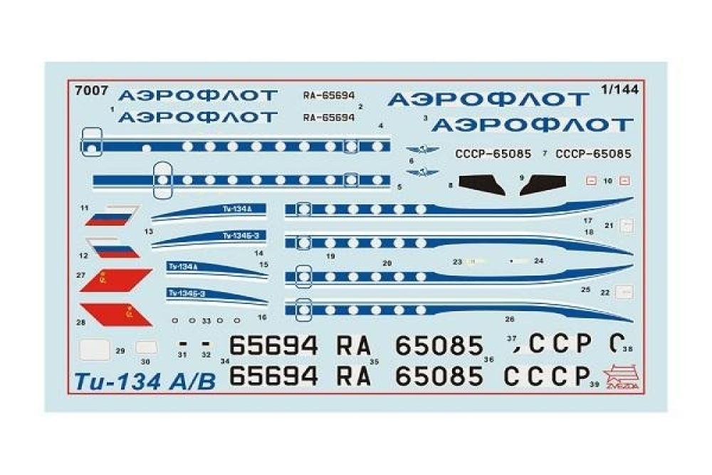 Модель Сборная ZVEZDA Авиалайнер Пассажирский ТУ-134А/Б-3, подарочный набор, 1:144