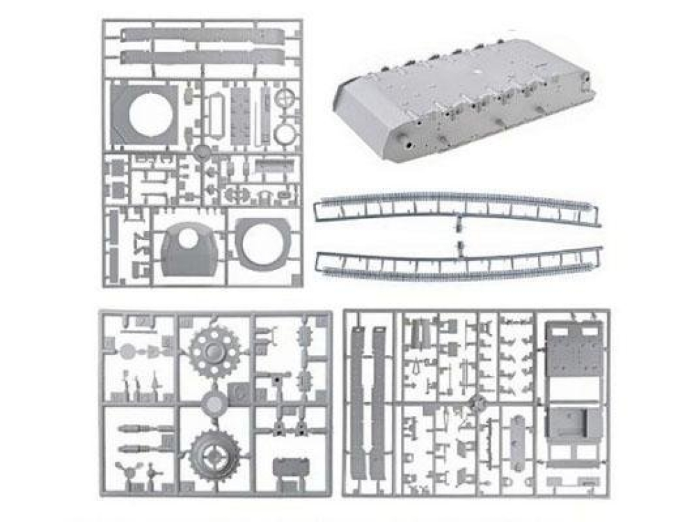 - полностью сборная ходовая часть, включая подвеску и колёса, наборная гусеничная лента с прямыми участками, выполненными единой деталью
