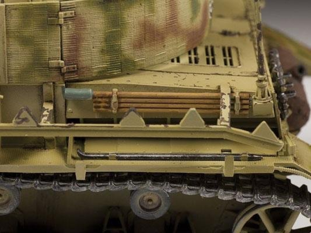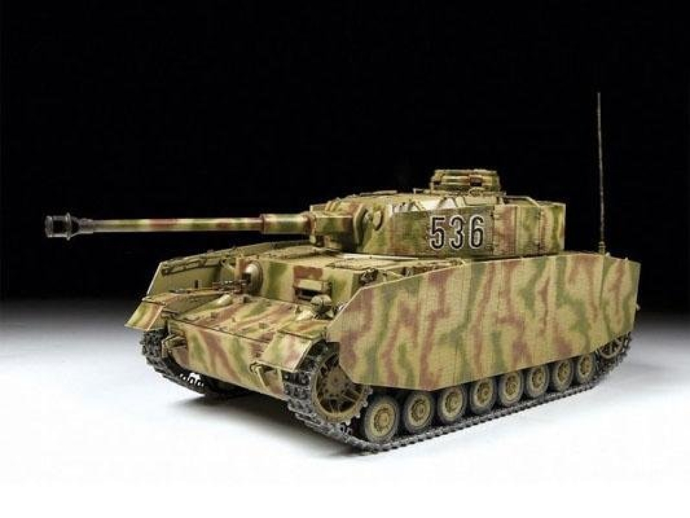 Самый массовый средний танк немецких панцерваффе Pz. Kpfw. IV выпускался серийно в нескольких модификациях с 1937 по 1945 год. За это время заводы концерна «Крупп» произвели 8686 таких машин. Появившаяся в апреле 1943 года модификация Pz. IVH, стала самой массовой и отличалась усиленным бронированием – лобовой бронелист этой 25-тонной машины достигал толщины 80 мм. 7,5-см орудие KwK.40 L/48 позволяло эффективно бороться с танками противника аналогичного класса.