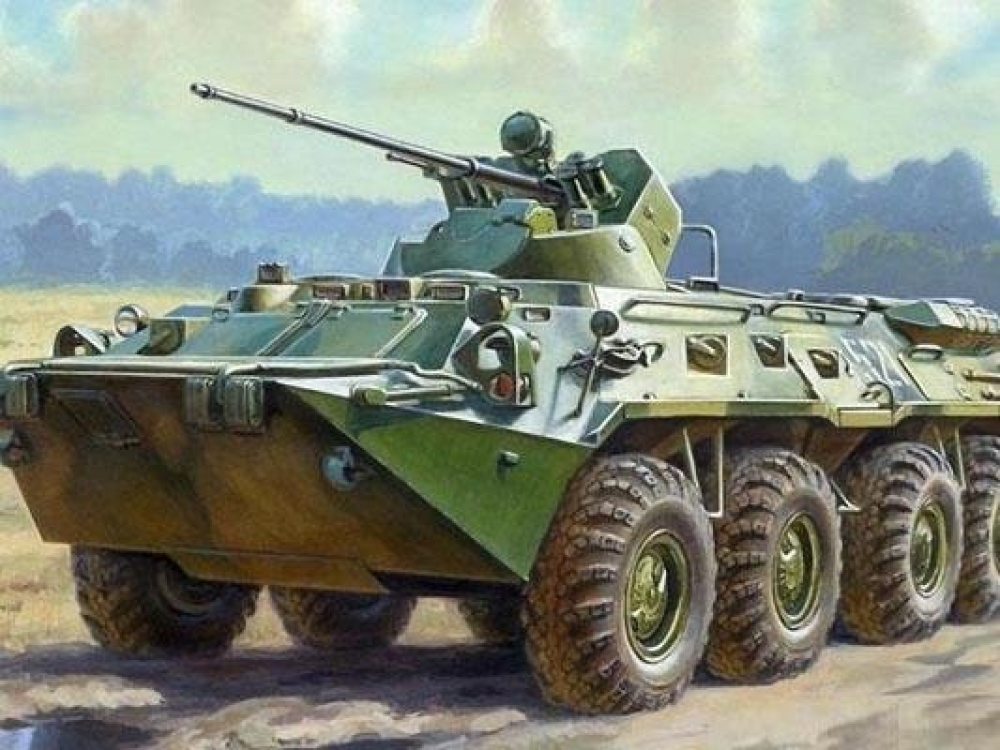 БТР-80А - это дальнейшее развитие основного российского бронетранспортера. Улучшили конструкцию башни, что позволило вести огонь на углах возвышения до 70 градусов, поражая вертолеты и самолеты противника на дистанции до 4 километров. Установлен танковый ночной прицел, позволяющий в ночных условиях поражать цели на дальности до 900 м.