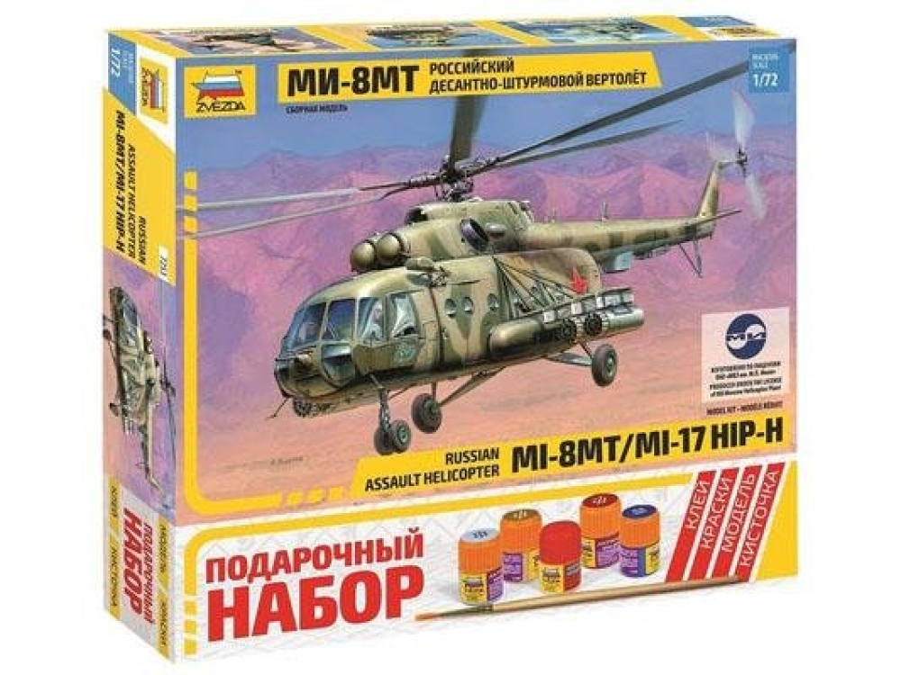 Модель Сборная ZVEZDA Российский вертолет Ми-8МТ, подарочный набор, 1:72