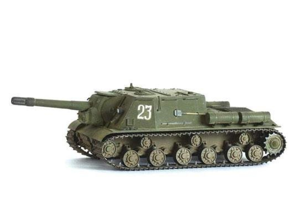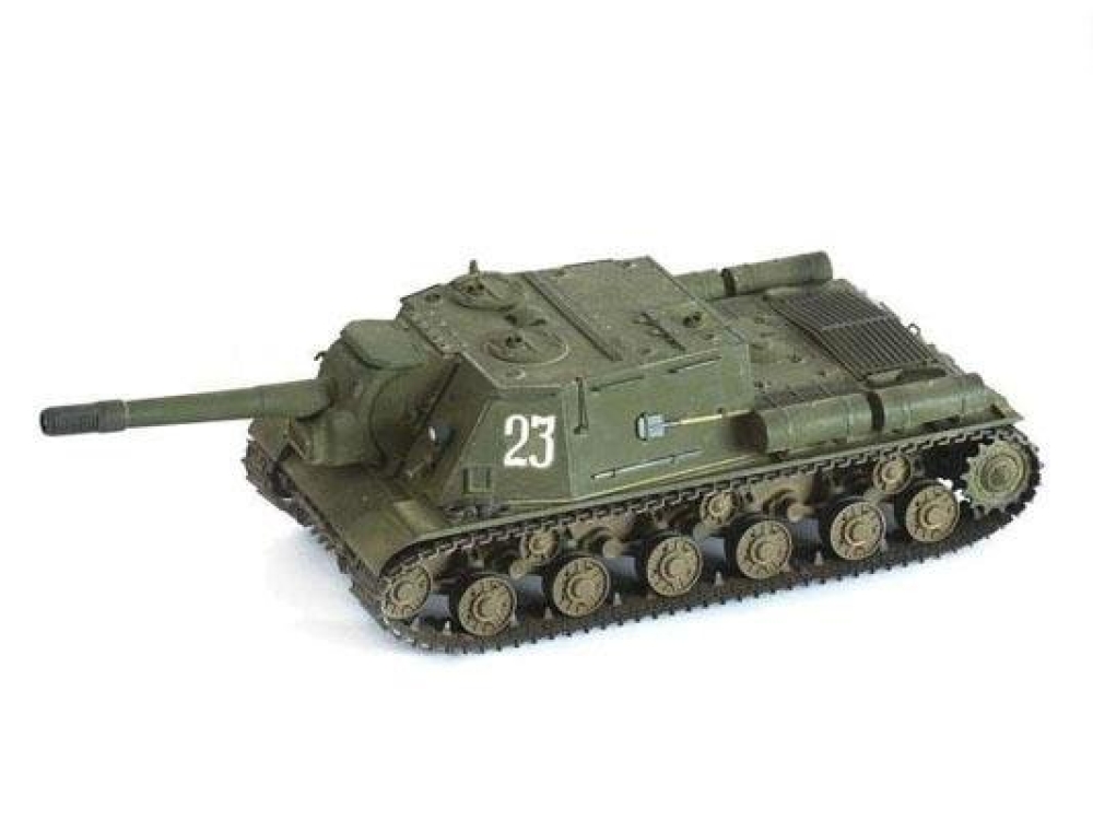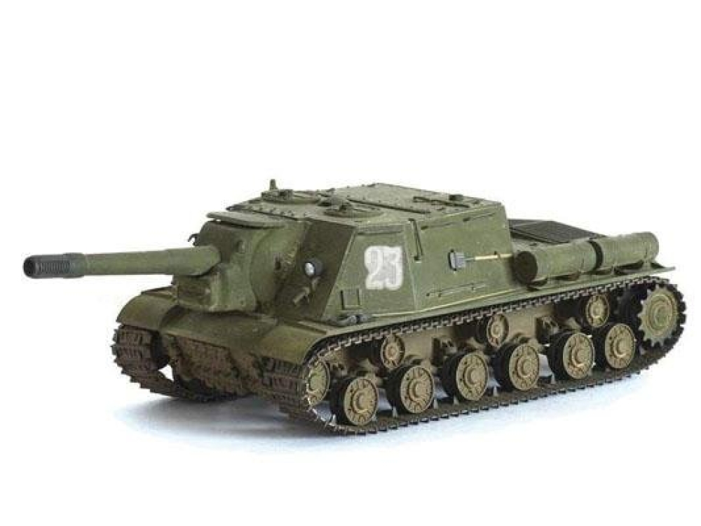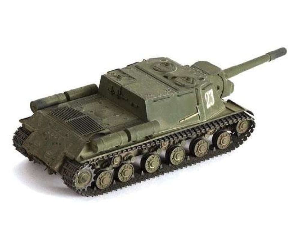 Боевая самоходная установка, которая была изобретена на основе легендарного танка ИС. Участвовала во многих баталиях начиная с 1943 года вплоть до полного разгрома фашисткой армии. Была установлена сверхмощная пушка 152 калибра.