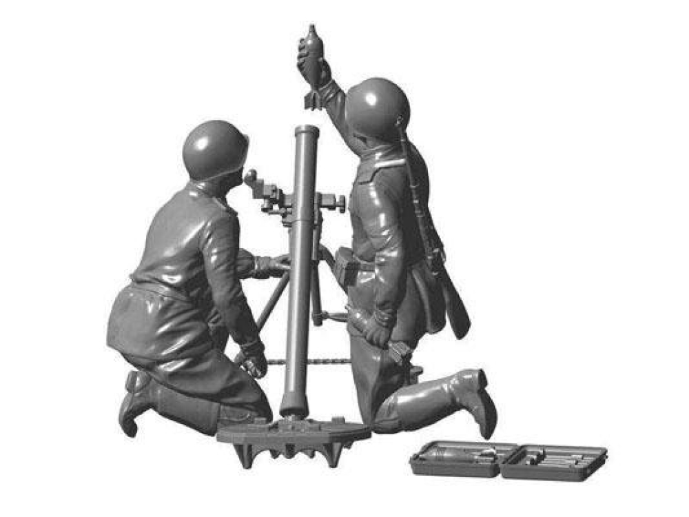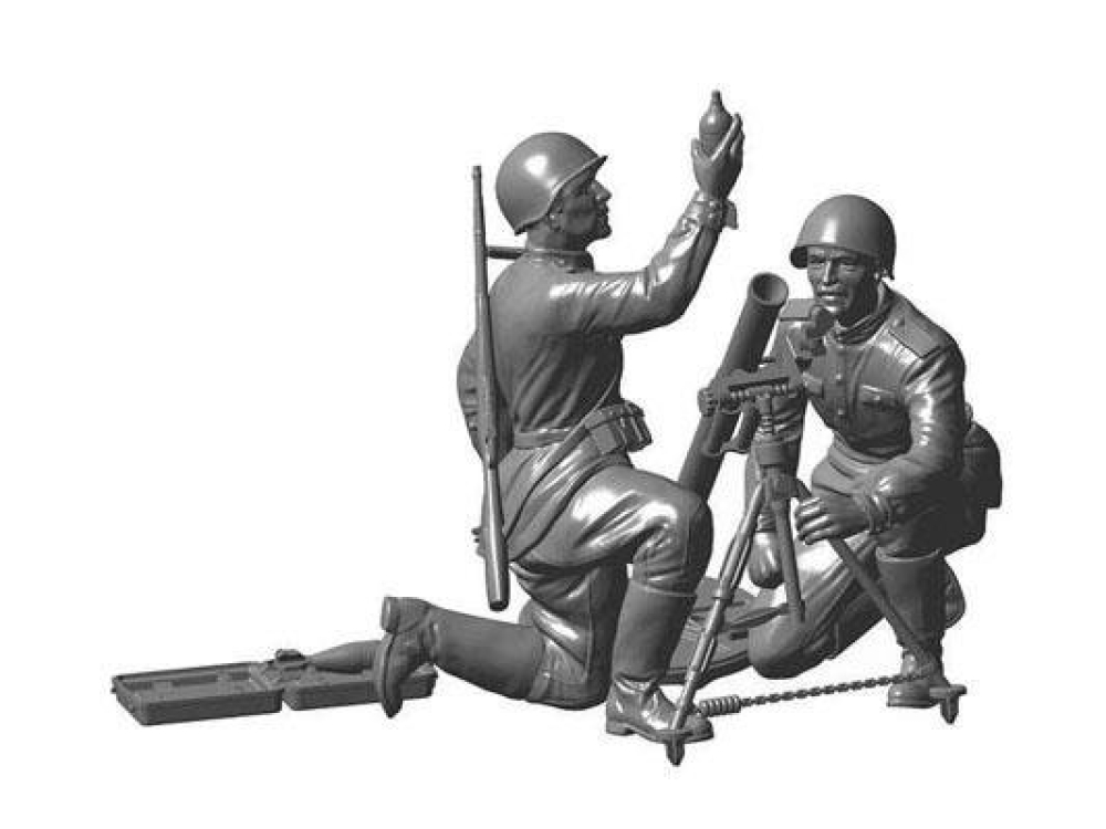 - модель можно собрать с минометом в боевом положении отдельно или установленного в коляске