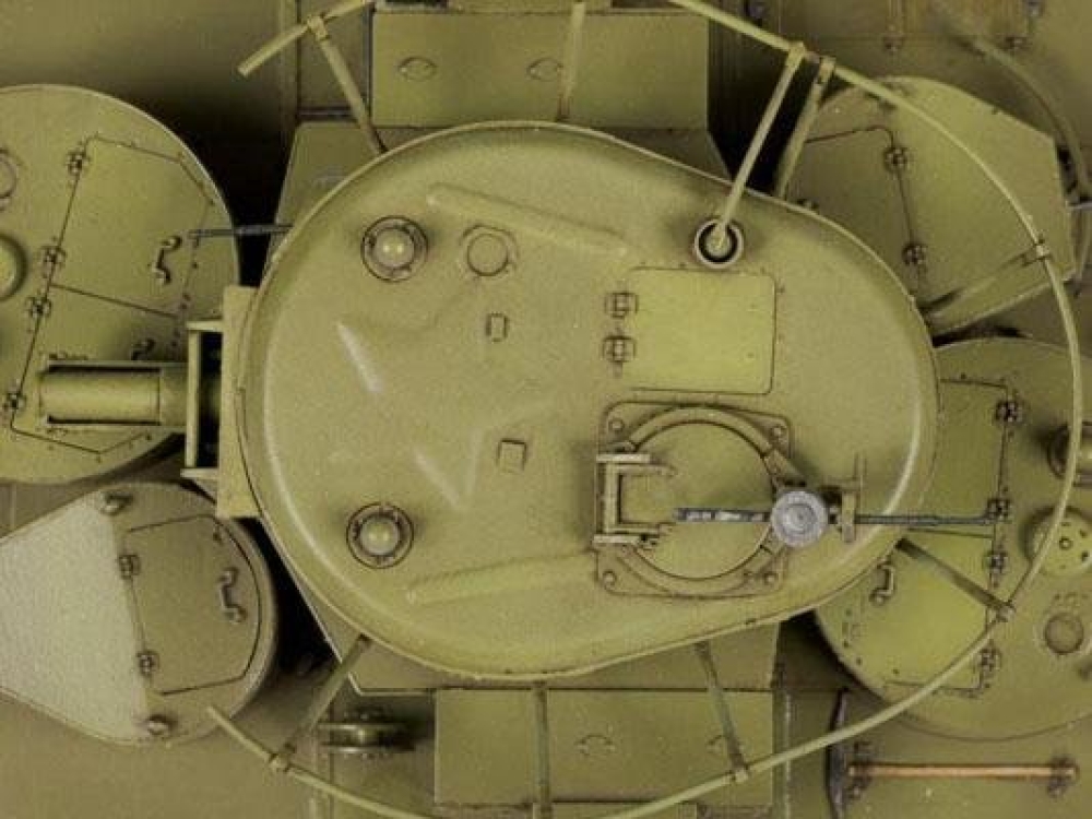 - полностью сборная ходовая часть, включая подвеску и колёса, наборная гусеничная лента с прямыми участками, выполненными единой деталью