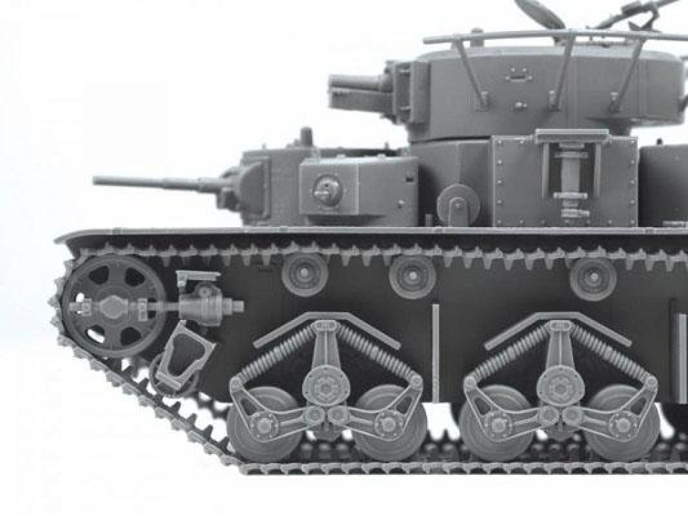 - полностью сборная ходовая часть, включая подвеску и колёса, наборная гусеничная лента с прямыми участками, выполненными единой деталью