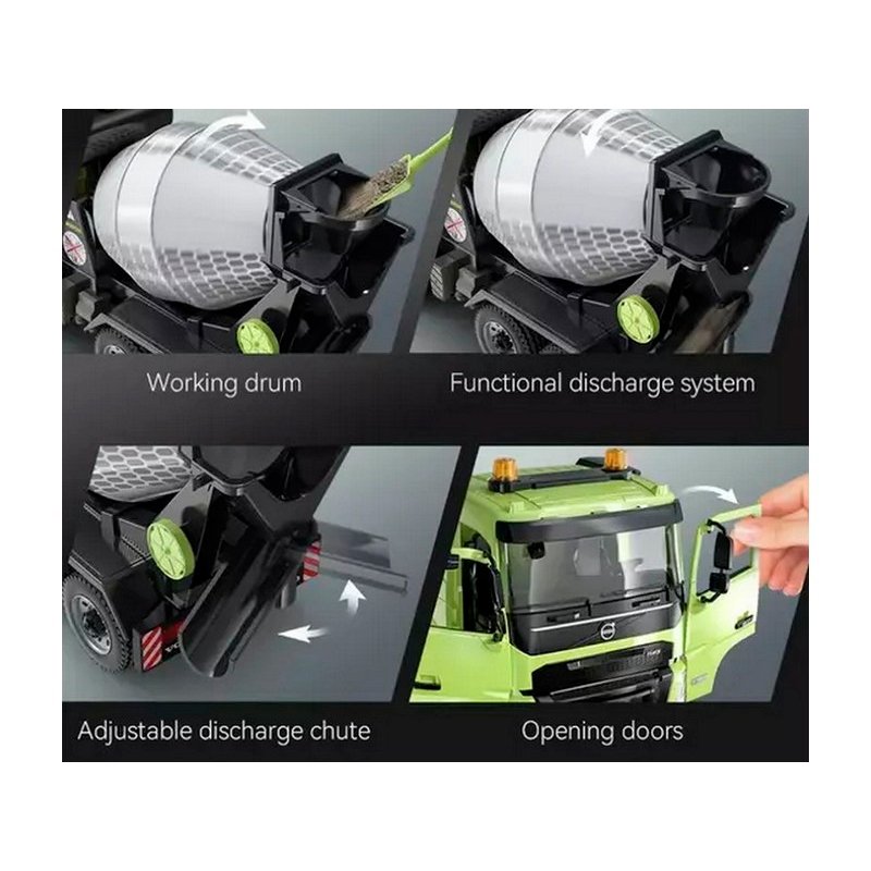 Бетономешалка Volvo FMX от Double Eagle в масштабе 1:20. Высокая степень детализации максимально приближает игрушку к оригиналу. Оснащена механизмом вращения смесителя. Бетономешалка обладает светодиодной подсветкой и рабочими звуками.