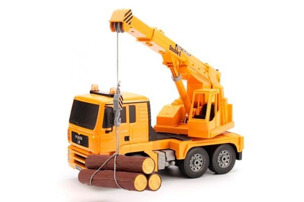 Лицензированная версия грузовика. Имеет высокую детализацию и довольно точно повторяет оригинальный грузовик. Машина имеет полноценное радиоуправление, ездит во всех направлениях. Яркие светодиодные фары позволят кататься в темное время суток. Стрела автокрана поднимается вверх/вниз и выдвигается, а платформа, на которой она установлена поворачивается вокруг своей оси. В комплекте идет набор пластиковых бревен, но вы можете играть на улице с реальным рельефом местности и предметами для загрузки. Рекомендуем также докупать самосвал от этого же производителя для веселой игры на улице с друзьями или родителями.