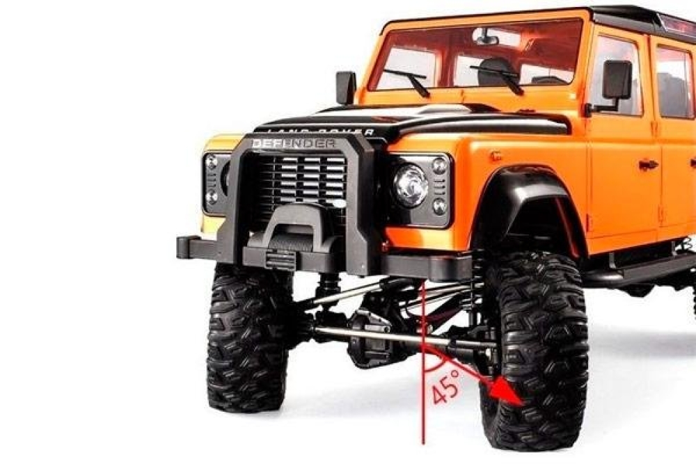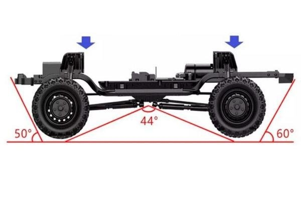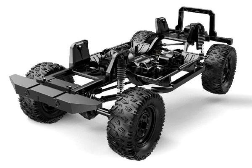 Машинка имеет карданный привод и подвеску с пружинными амортизаторами. Колеса установлены внедорожные, имеют глубокий протектор и их сложно проколоть