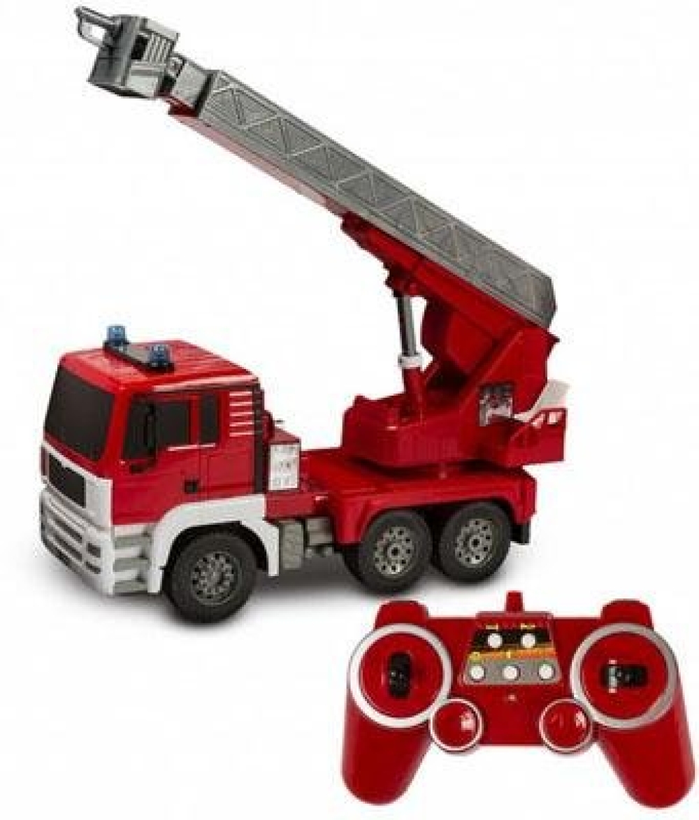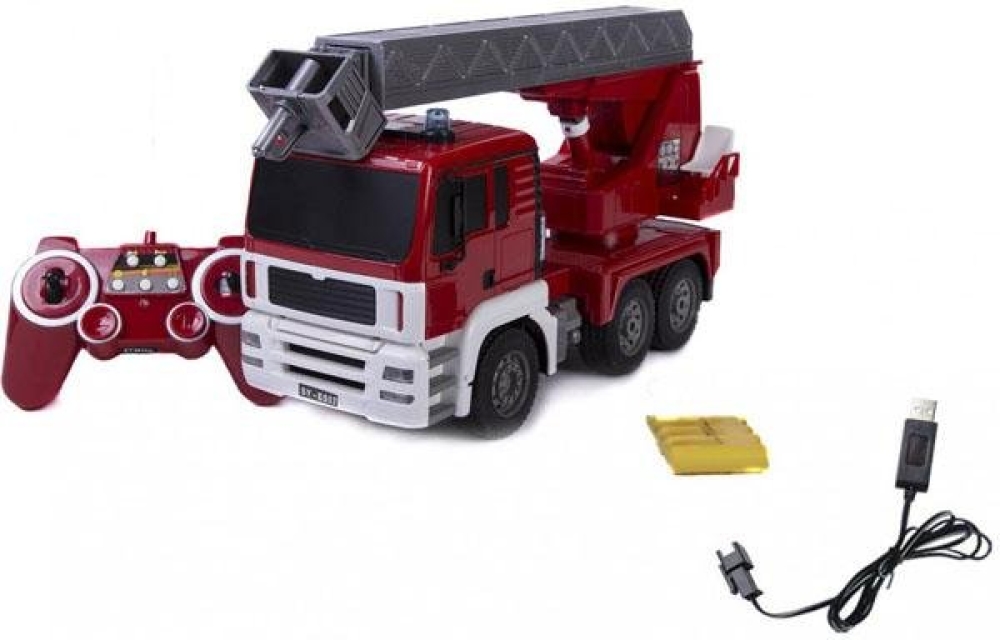Комплект поставки: пожарная машина, пульт управления 2.4GHz, аккумулятор и зарядное устройство, инструкция