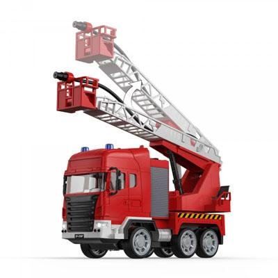 Радиоуправляемая пожарная машина. Стрела поднимается и вращается на 300 градусов, а так же обладает водной помпой. Звуковые эффекты сирены