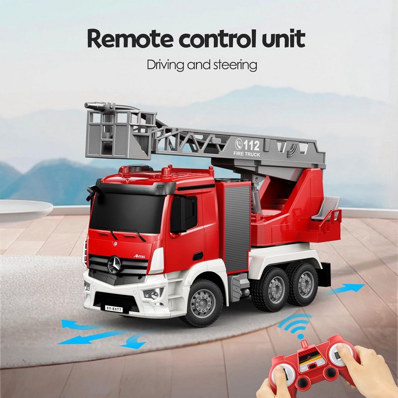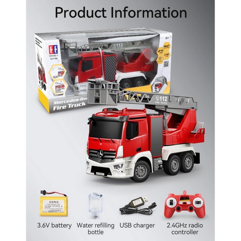 Радиоуправляемая машина Double Eagle Пожарная машина Mercedes Benz Antos в масштабе 1/26. Поворот стрелы 360°, вода.