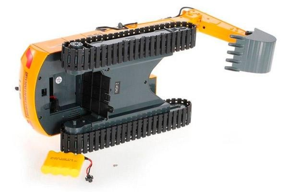Экскаватор ездит во всех направлениях и крутится на 360 градусов, кабина вращается на 270 градусов. Стрела также подвижна и работает как у настоящего экскаватора, сгибаясь в нескольких местах. При желании вы можете поменять ковш на отбойный молоток. Трактор оснащён гусеницами, а значит он имеет повышенную проходимость по любой поверхности. Ковш выполнен из металла, поэтому вы сможете копать практически любую поверхность.