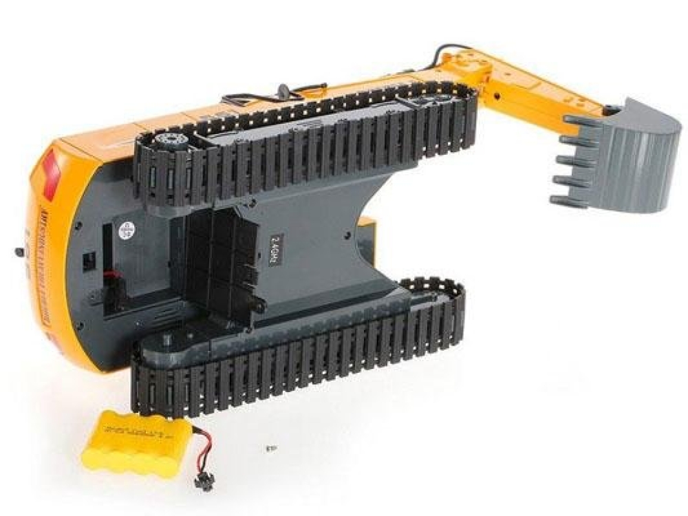 Экскаватор ездит во всех направлениях и крутится на 360 градусов, кабина вращается на 270 градусов. Стрела также подвижна и работает как у настоящего экскаватора, сгибаясь в нескольких местах. Трактор оснащён гусеницами, а значит он имеет повышенную проходимость по любой поверхности. Ковш выполнен из металла, поэтому вы сможете копать практически любую поверхность.