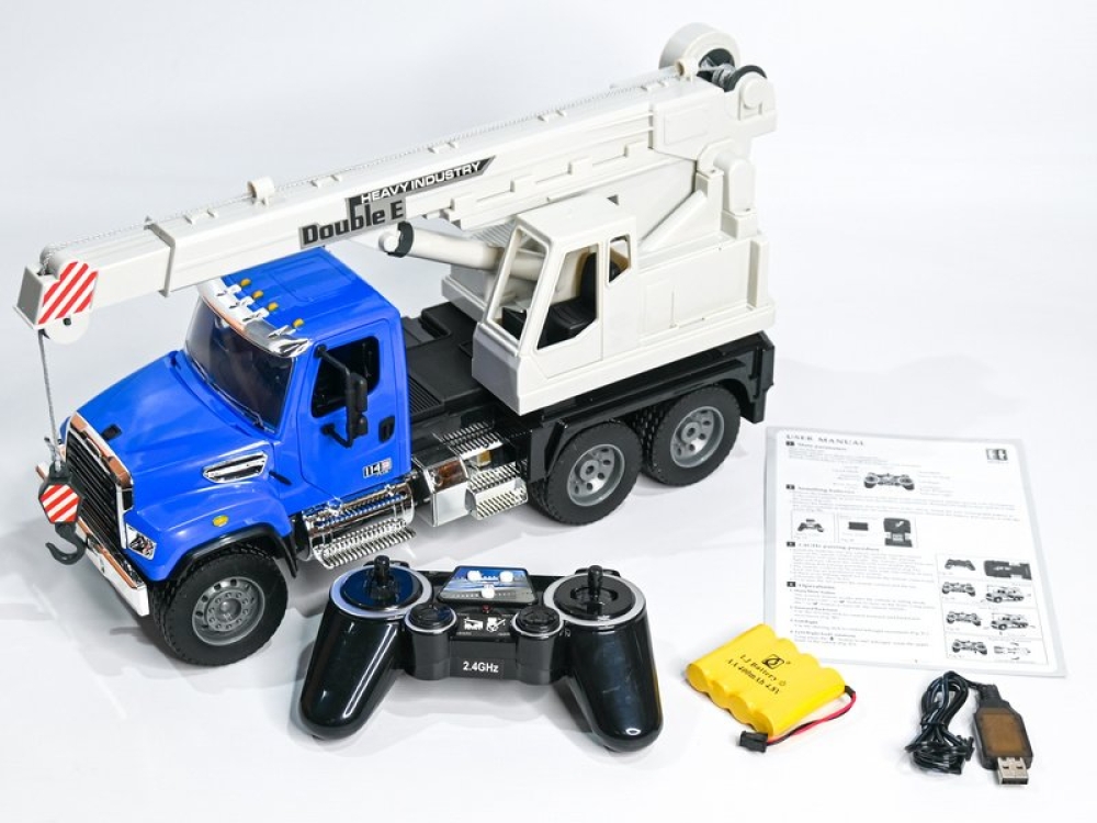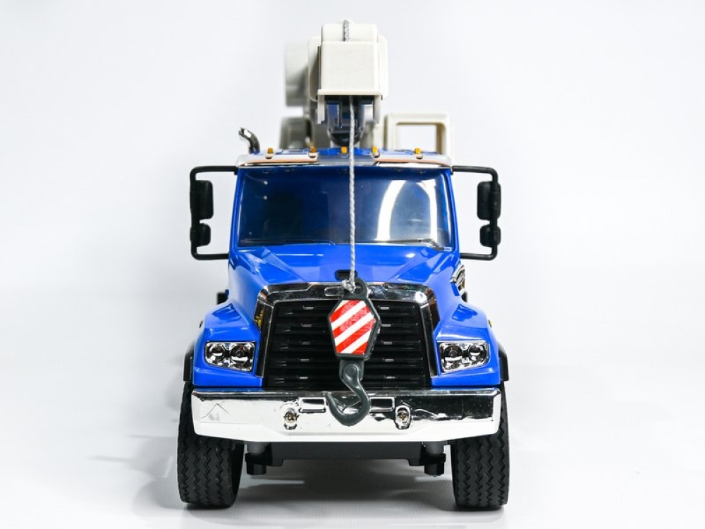 Радиоуправляемый самосвал Double Eagle Freightliner 114SD в масштабе 1:20. Полный контроль управления позволяет игрушке двигаться вперед/назад, влево/вправо, совершать повороты и остановки. Ребёнок сможет управлять не только колёсами и направлением движения, но и работой стрелы. Стрела поднимается и опускается, может вращаться на 660°. Также поднимается и опускается крюк.