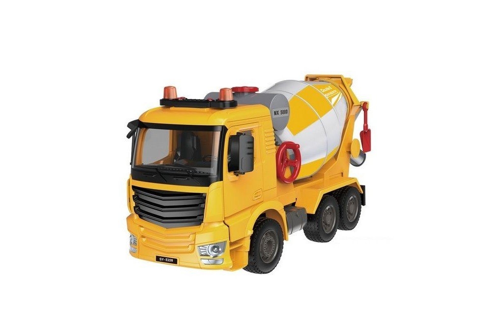 Бетономешалка от Double Eagle в масштабе 1:20. Смесительный барабан вращается, кабина откидывается. Двери кабины открываются. Оснащёна звуковыми и световыми сигналами.
