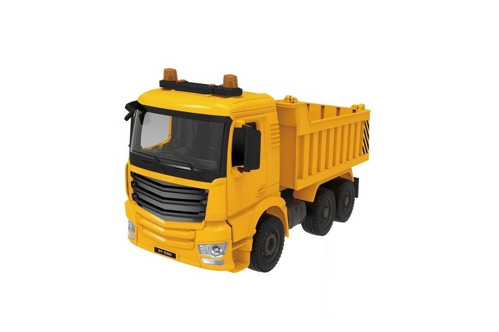 Самосвал от Double Eagle в масштабе 1:20. Кузов самосвала поднимается, кабина откидывается. Двери кабины открываются. Оснащён звуковыми и световыми сигналами.