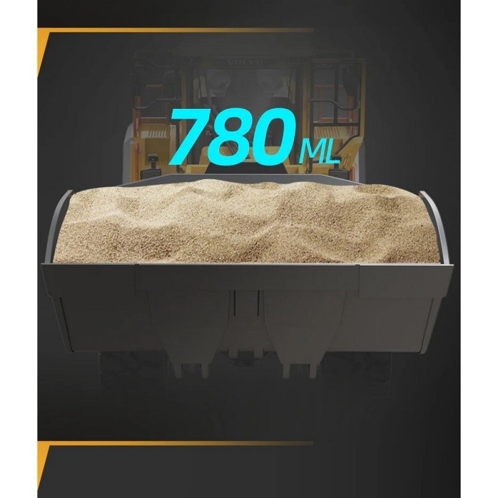 Надежная система винтового привода, способен поднимать груз весом до 5 кг, перевозить в ковше 750 мл и выдвигать стрелу на высоту до 35 сантиметров - все это в мини-версии колесного погрузчика Volvo L260H.