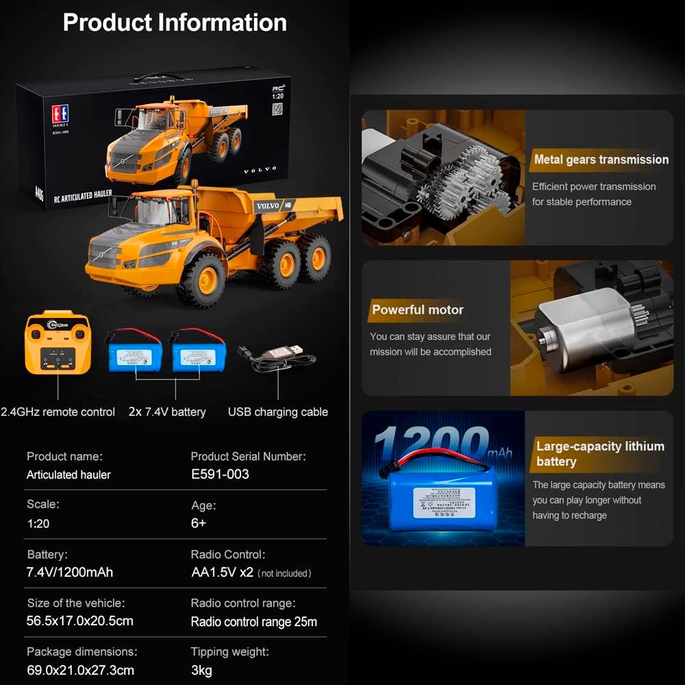 Радиоуправляемый самосвал Volvo A40G от Double Eagle в масштабе 1:20