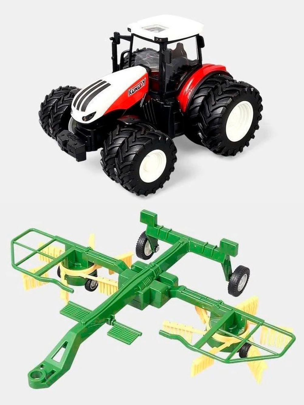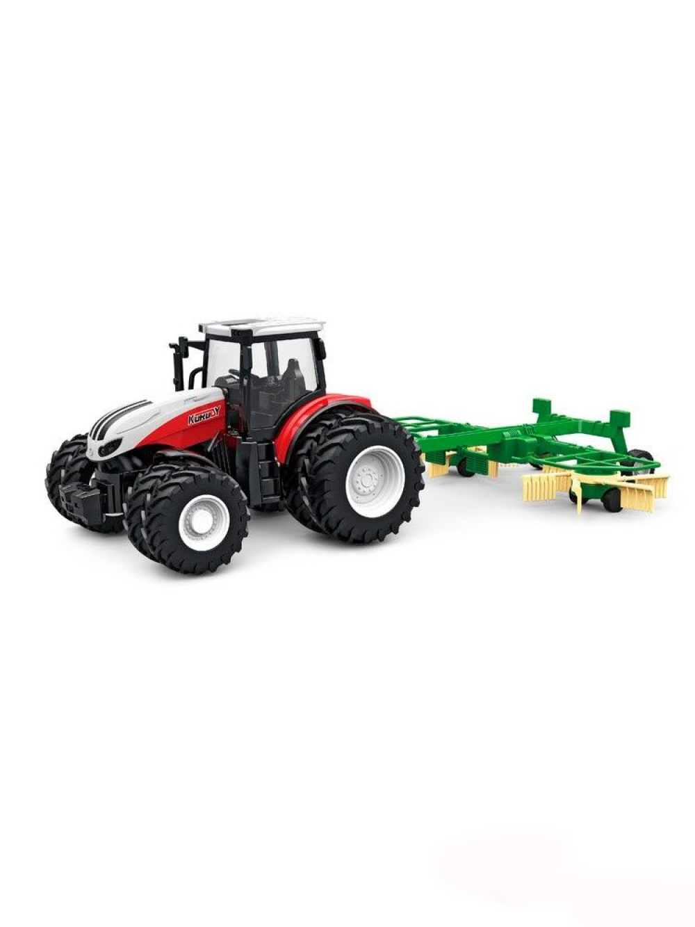 Трактор имеет яркий и красивый внешний вид, а резиновые широкие колеса прекрасно ездят по любой поверхности. Трактор двигается вперед, назад, способен повернуть налево и направо, включить/выключить свет, а также включается демонстрационный режим. К тракторам Korody легко прицепляется навесное оборудование, чтобы показать детям, как возделываются поля и выращиваются сельскохозяйственные продукты. Трактор имеет в комплекте прицеп. Сеялка легко снимается и может перемещаться самостоятельно. Игрушка полностью управляется с пульта дистанционного управления на расстоянии до 45 метров. Все действия сопровождаются звуковыми, а также световыми сигналами.