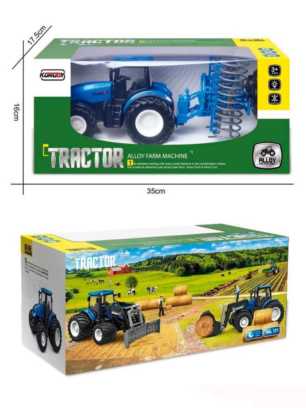 Радиоуправляемый фермерский трактор Korody с сеноподборщиком, мет. кузов, широкие колеса 1/24 2.4G 6CH RTR - KR6636HK