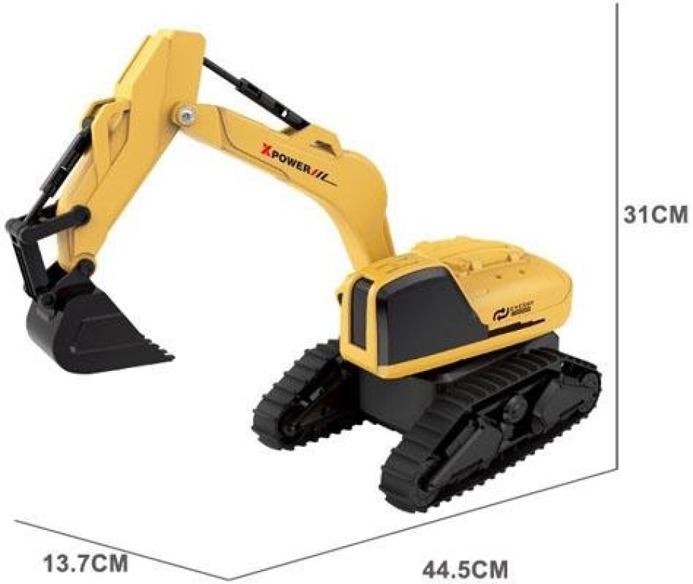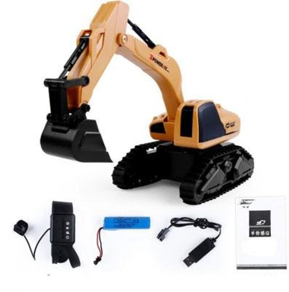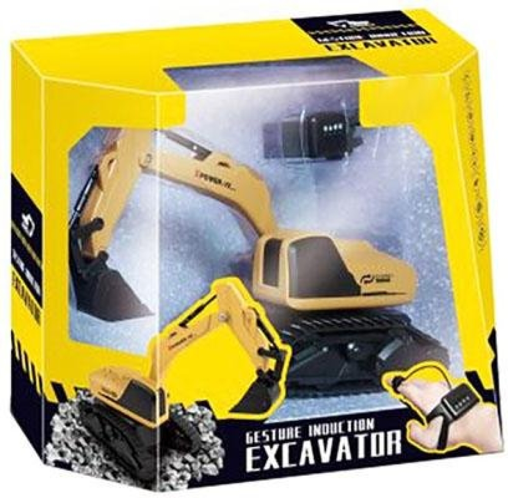 Модель экскаватора с полноценной системой управления - ездит во все стороны, в т.ч. разворачивается на месте, башня поворачивается влево и вправо, а стрела с ковшом поднимается и сгибается в нескольких местах. Гусеницы выполнены единой деталью, они гибкие и прочные, изготовлены из резины. Для управления моделью в комплекте идет специальный браслет-пульт, который реагирует на ваши жесты. Управляя наклоном кисти и указательного пальца экскаватор будет ездить и поворачивать башней и стрелой.