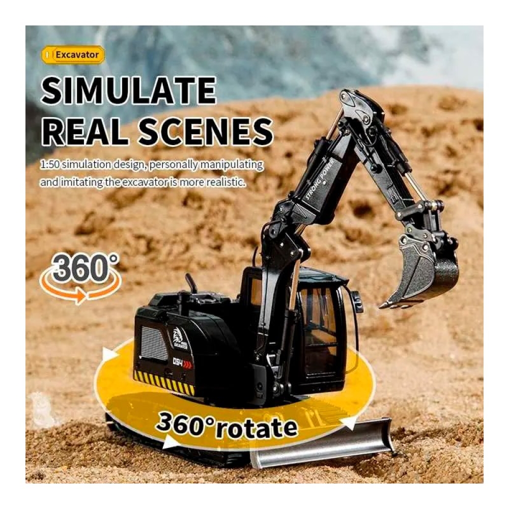 Масштабная модель экскаватор-бульдозер Huina 1:50 - HN1726-YELLOW