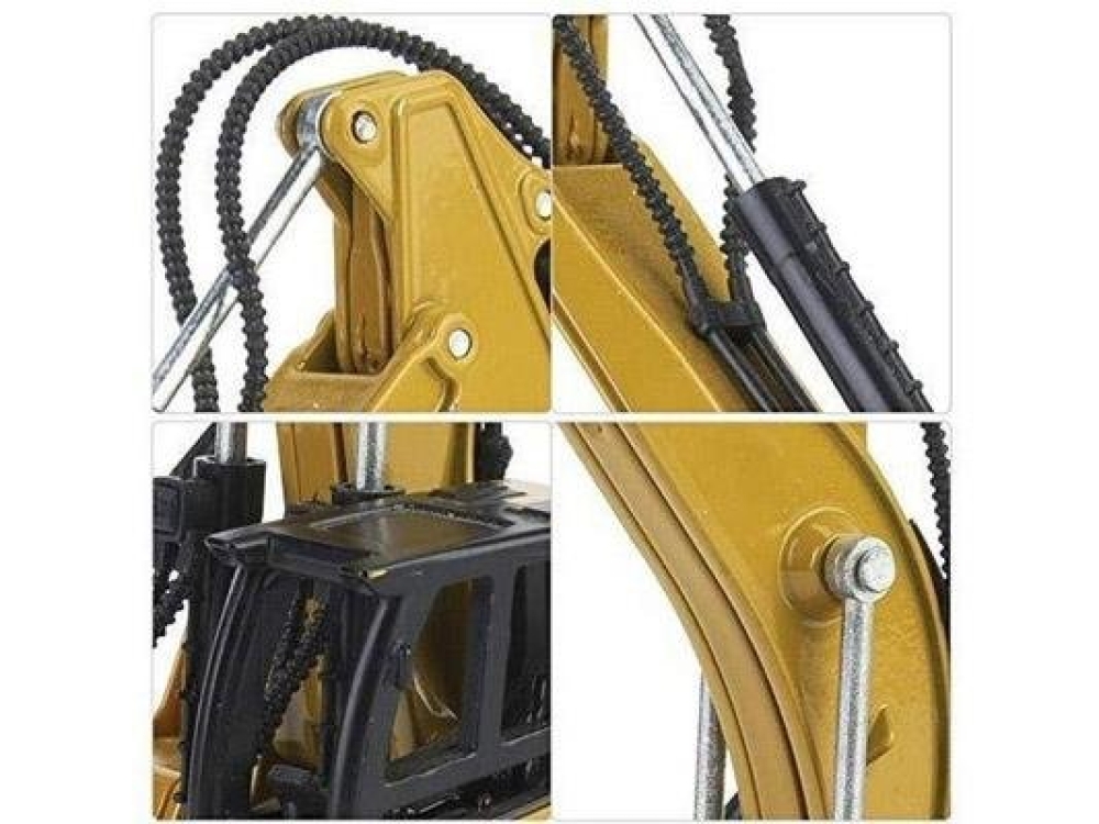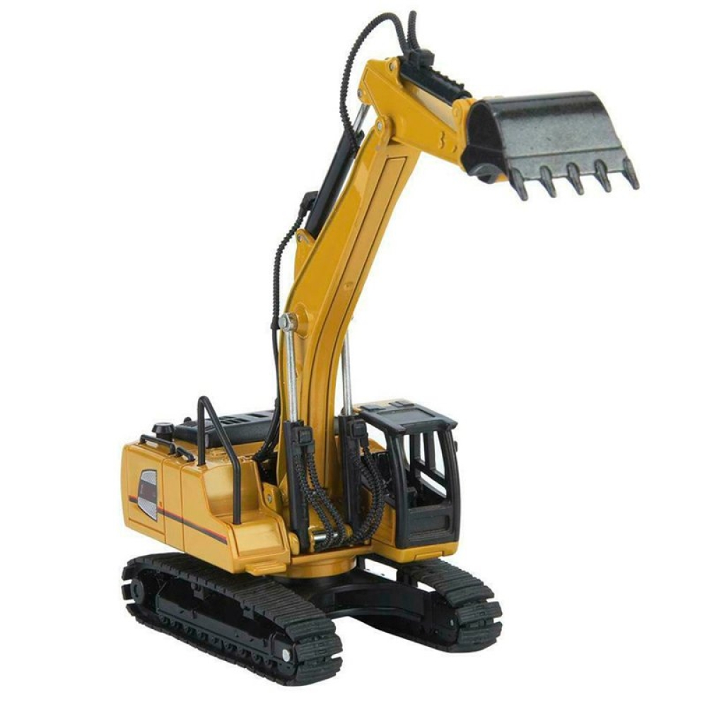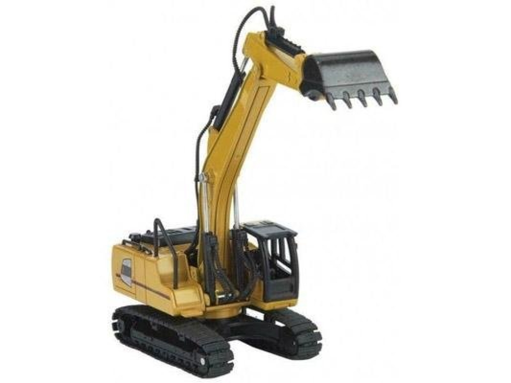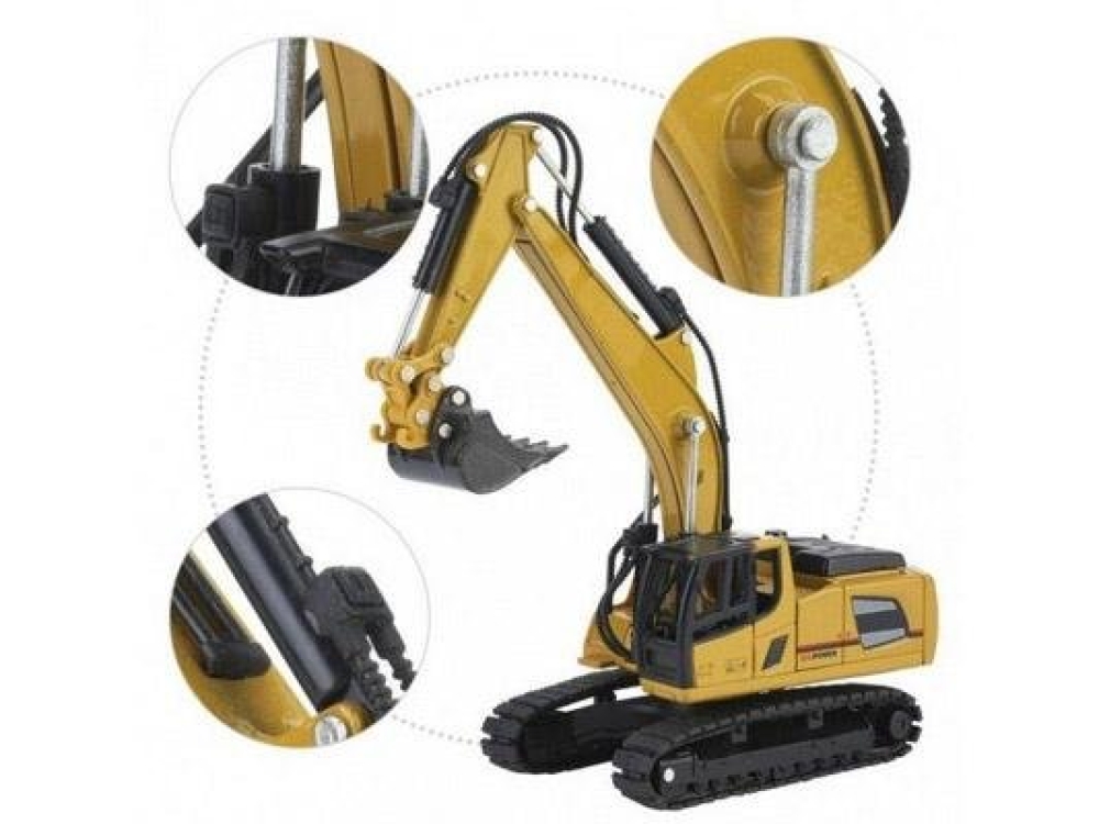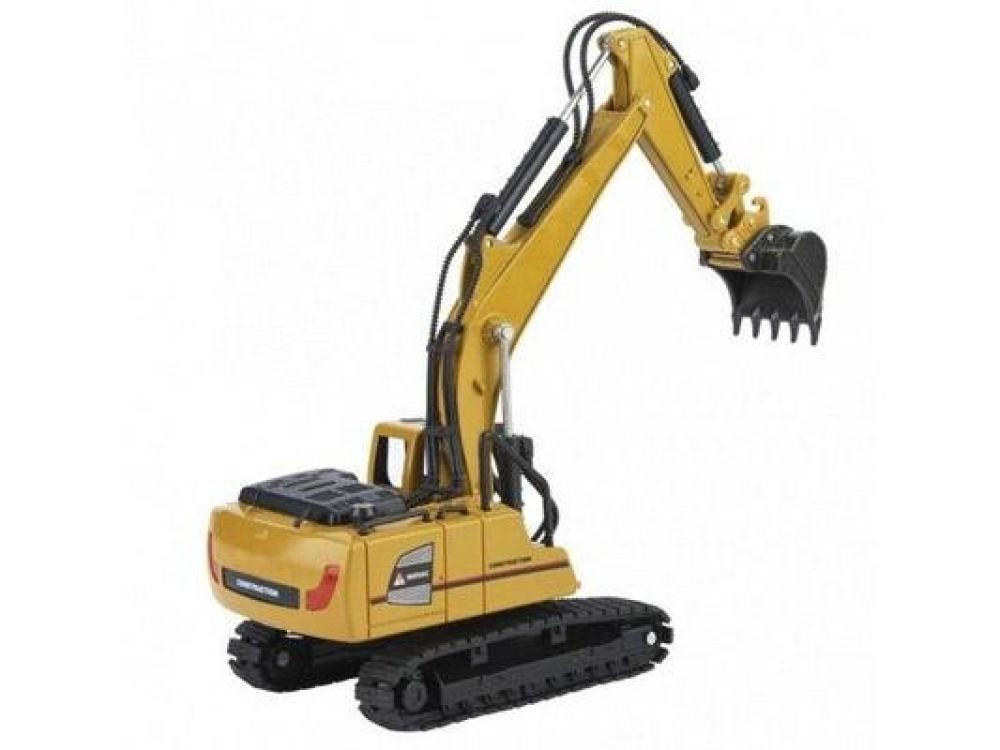 Небольшой экскаватор с подвижными деталями, изготовленный из металла с применением качественной резины и пластика. Стрела с ковшом как и у старших моделей сгибается в 3-х местах, а башня вращается.