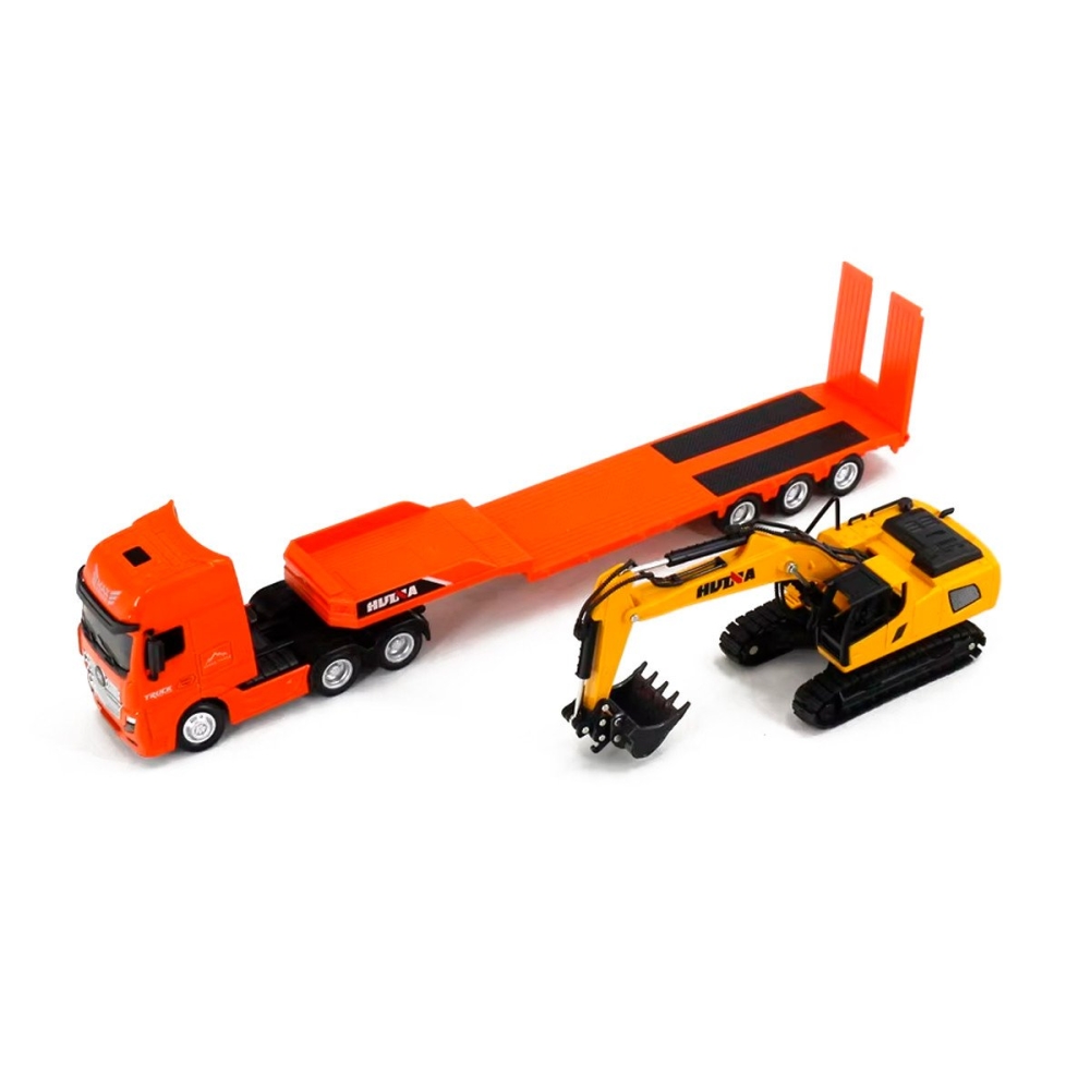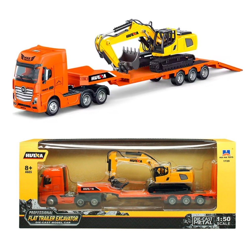 Металлический грузовик трейлер с экскаватором HUINA 1:50 - HN1729-ORANGE