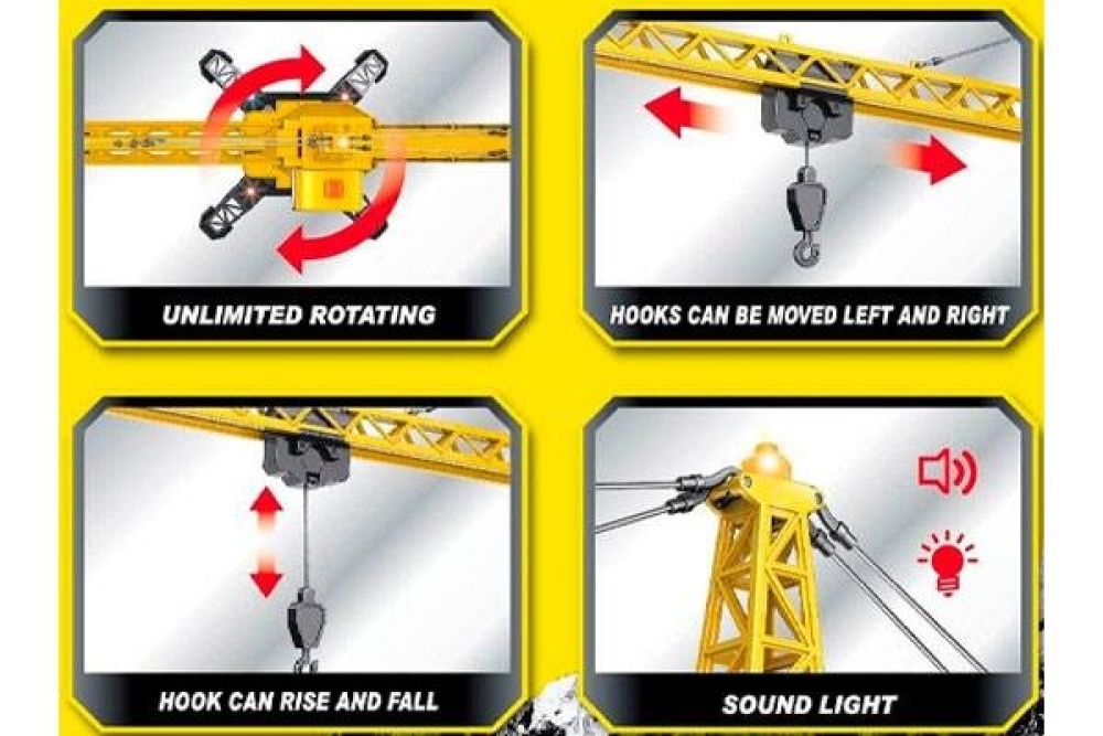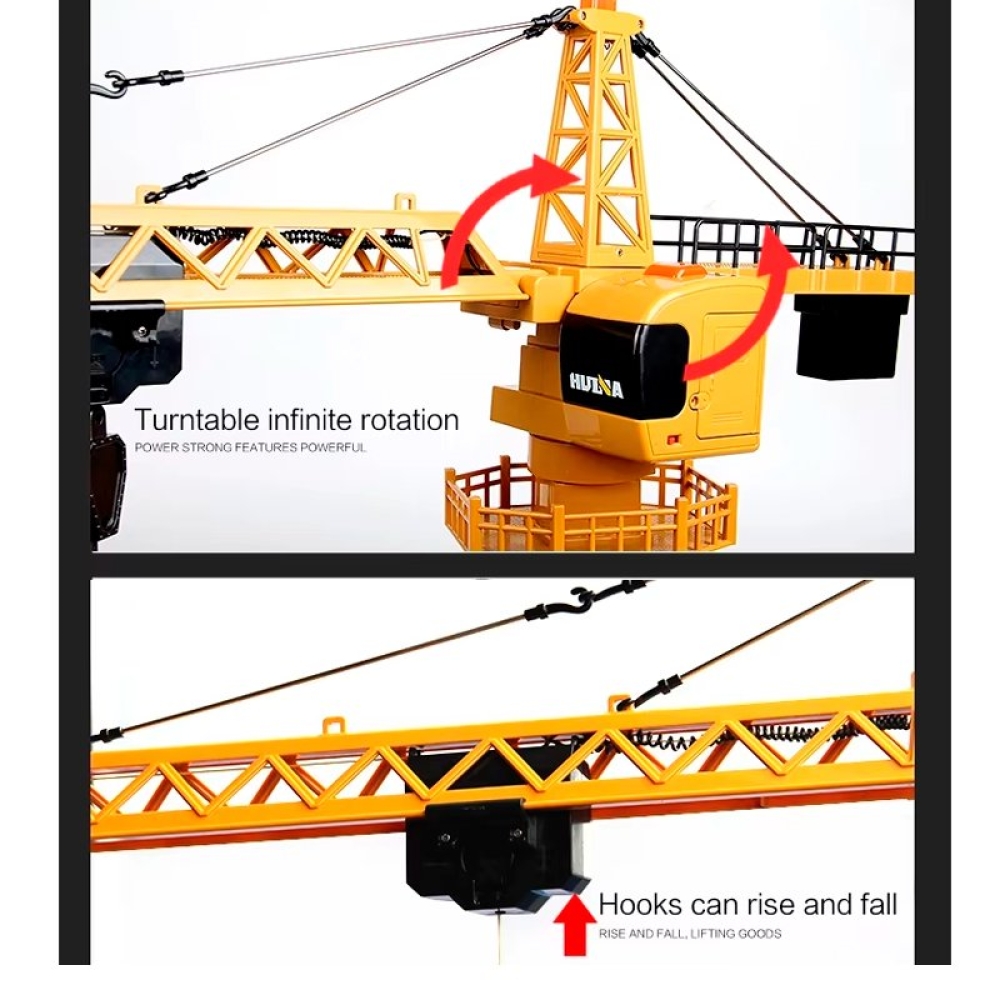 Радиоуправляемый башенный кран Hui Na Toys масштаб 1:14 2.4G-HN1585 идеально подходит для детей. Эти игрушки развивают мелкую моторику. Просты и удобны в управлении. Во время игры на кране загораются красные огоньки , которые еще больше привлекут внимание ребенка и поможет развить воображение. Так же эта игрушка выполнено из экологически чистых материалов, что идеально подходит для детей. Модель выполнена в масштабе 1:14, что подойдет для самых маленьких любителей взрослой техники.