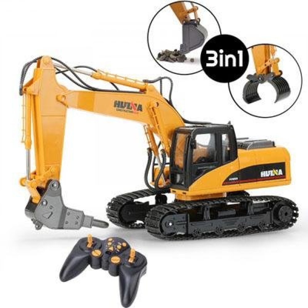 Усовершенствованная модель самого популярного экскаватора от компании HuiNa. В комплекте идет 3 съемные насадки - ковш, захват и молоток. Они быстро заменяются исходя из тех работ, которые вы будете проводить на местности. Многоканальная аппаратура управления идет в комплекте от старших моделей и позволяет управлять стрелой экскаватора с любой из насадок практически на профессиональном уровне. База осталась прежней - полностью подвижный экскаватор с поворотной кабиной и сгибающейся стрелой 3-х местах. Играть можно на улице в сухую погоду. Вы запросто сможете выкопать яму, разбить сухой грунт и перетащить ветки и камни.